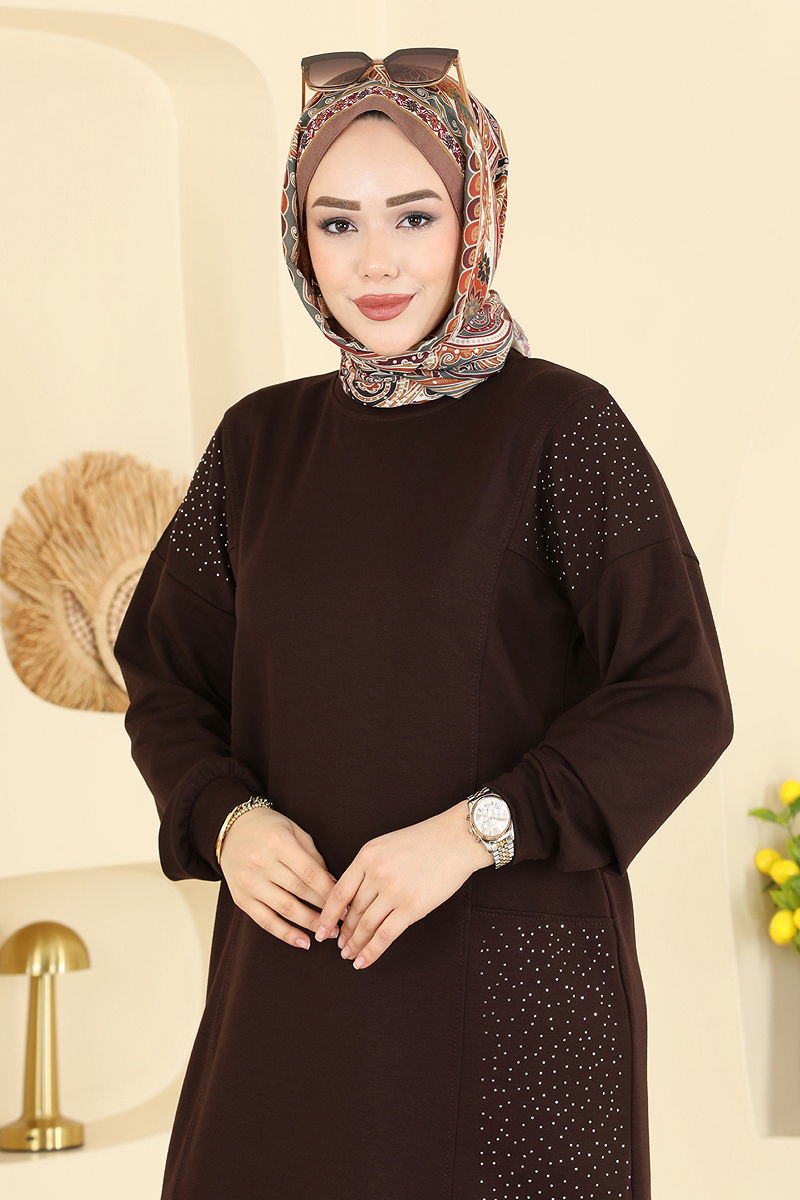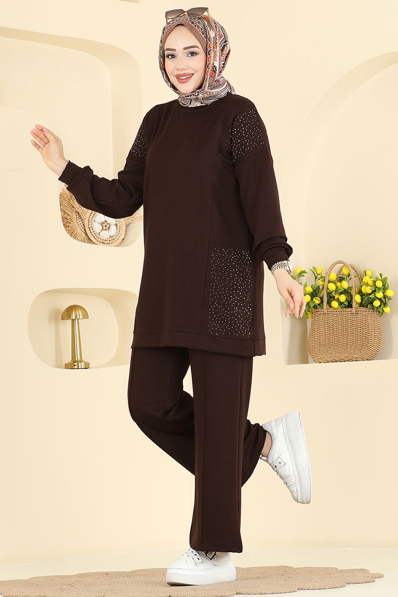 Taş Detaylı Modal Takım 3265HBS856 Kahve