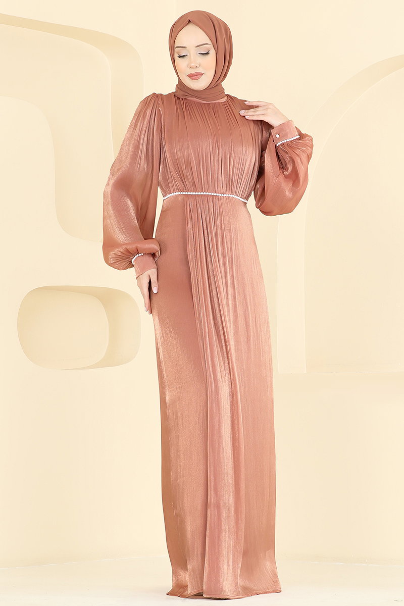 Taş Detaylı Organze Abiye 6231BSK463 Gül Kurusu