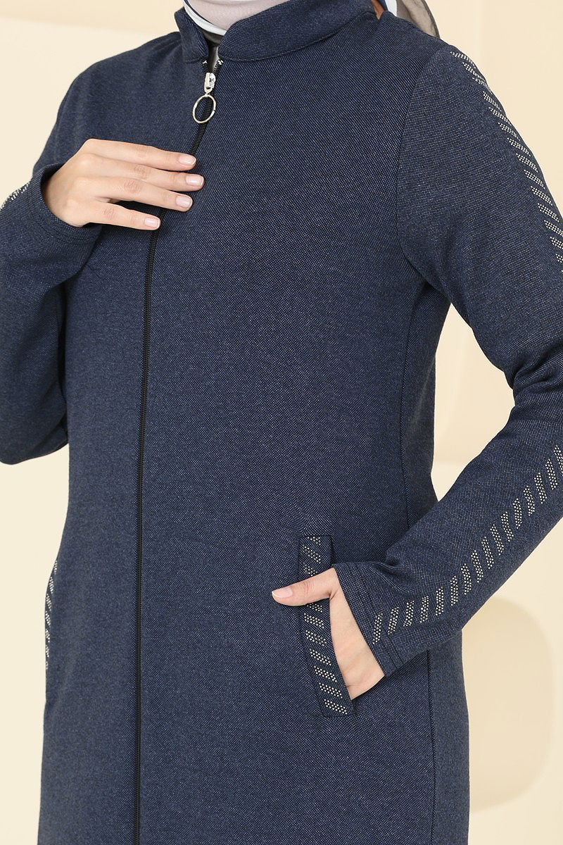 المنتج لديه ياقة نصف بيضوية. غير مبطنة. المنتج به سحاب في جزء من الأمام. يتم لصق الحجارة. الجيب متاح. قد يكون هناك اختلاف في الدرجة اللونية في المنتج بسبب التقاط الصور الفوتوغرافية.