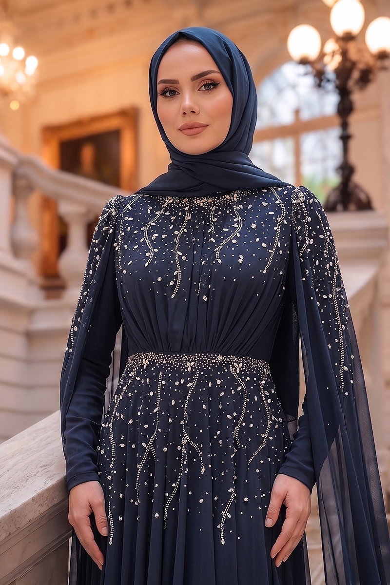 Bu zarif Taş Detaylı Şifon Abiye, tesettür tasarımı ile dört mevsim boyunca şıklığınızı korumanızı sağlar. Kristal taş detayları ile dikkat çeken bu abiye, sadece kuru temizleme ile bakımı yapılabilir özelliğe sahiptir. Dik yakası ve arkadan fermuarlı yapısı ile modern bir görünüm sunarken, astarlı yapısı konforunuzu artırır. Her özel davet ve kutlamada göz kamaştırın!