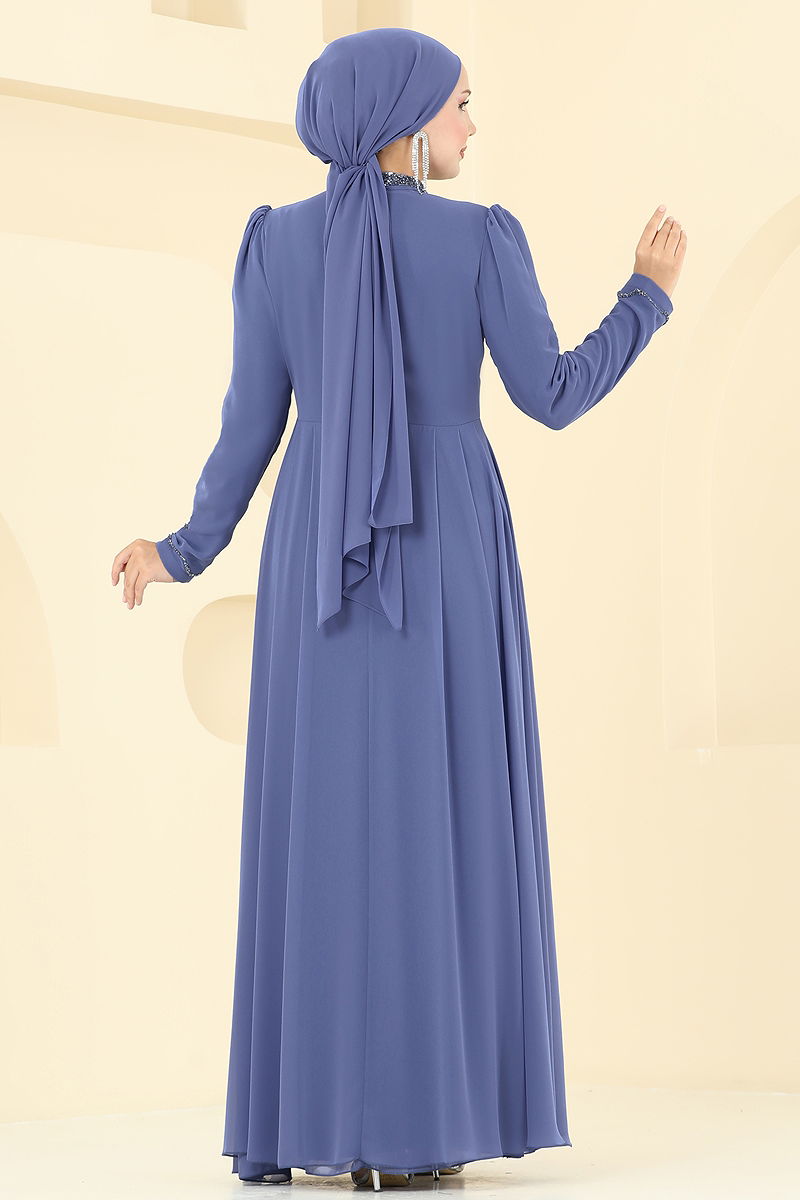 Taş Detaylı Şifon Abiye Mavi