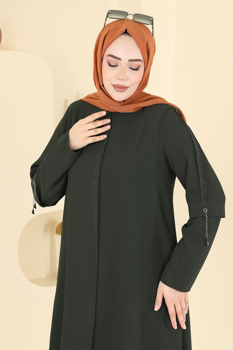 Taş Detaylı Şık Ferace 0502ORG1169 Haki