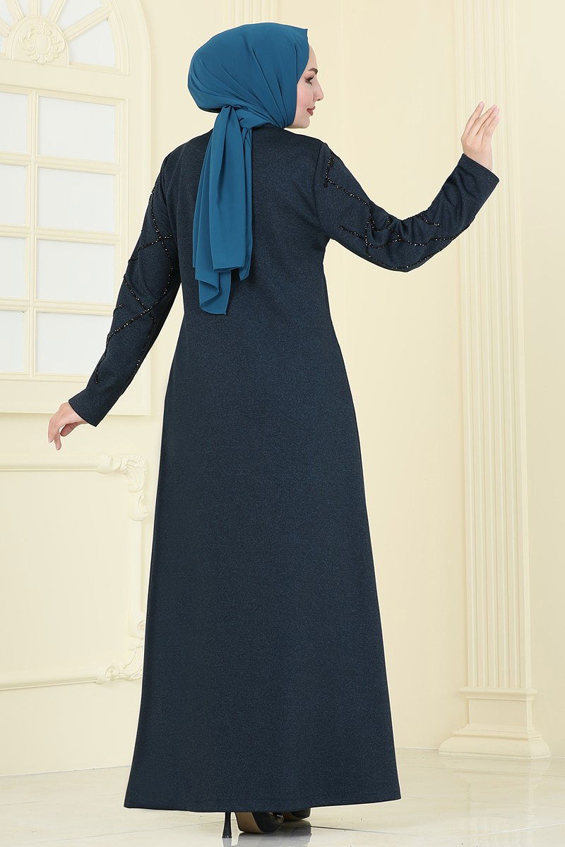 Taş Detaylı Şık Pardesü Ferace 2263EDM718 Petrol