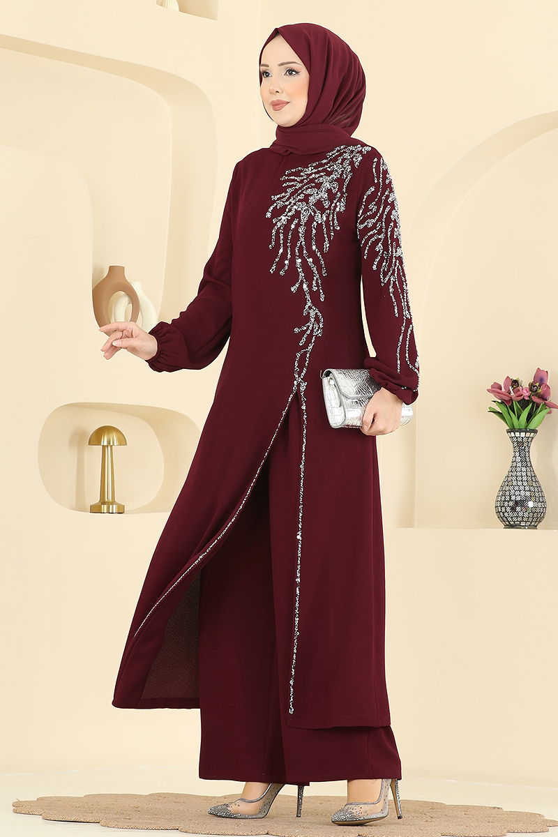 Taş Detaylı Şık Takım 5957AB368 Bordo