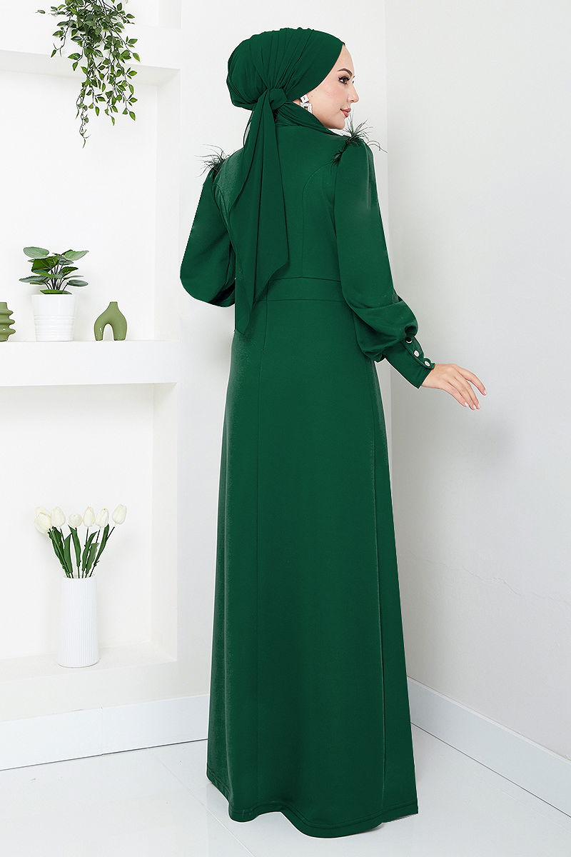 Taş Detaylı Tesettür Abiye 271DVL897-M Zümrüt