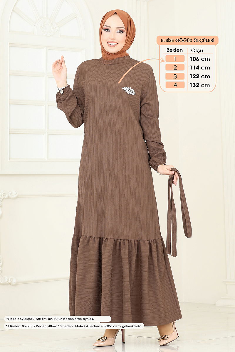 Taş Detaylı Tesettür Elbise Kahve