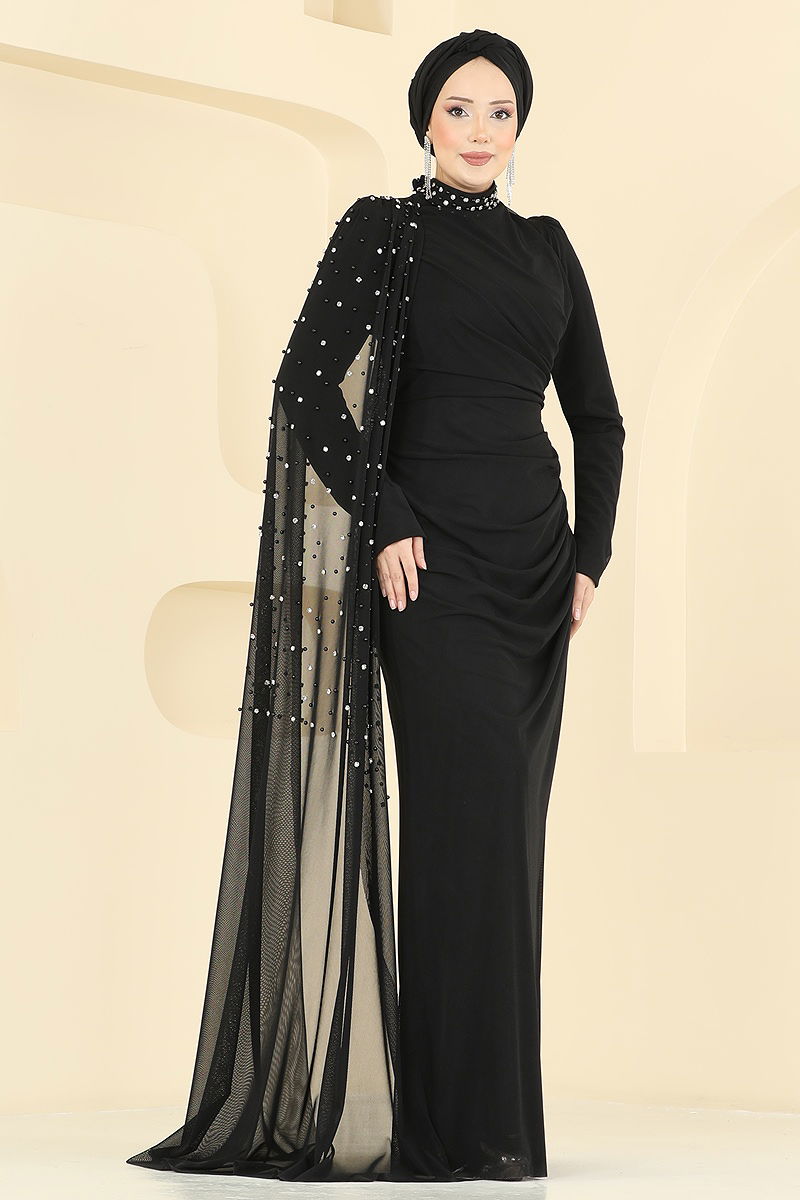 Taş Detaylı Tül Abiye 5737EDF311 Siyah