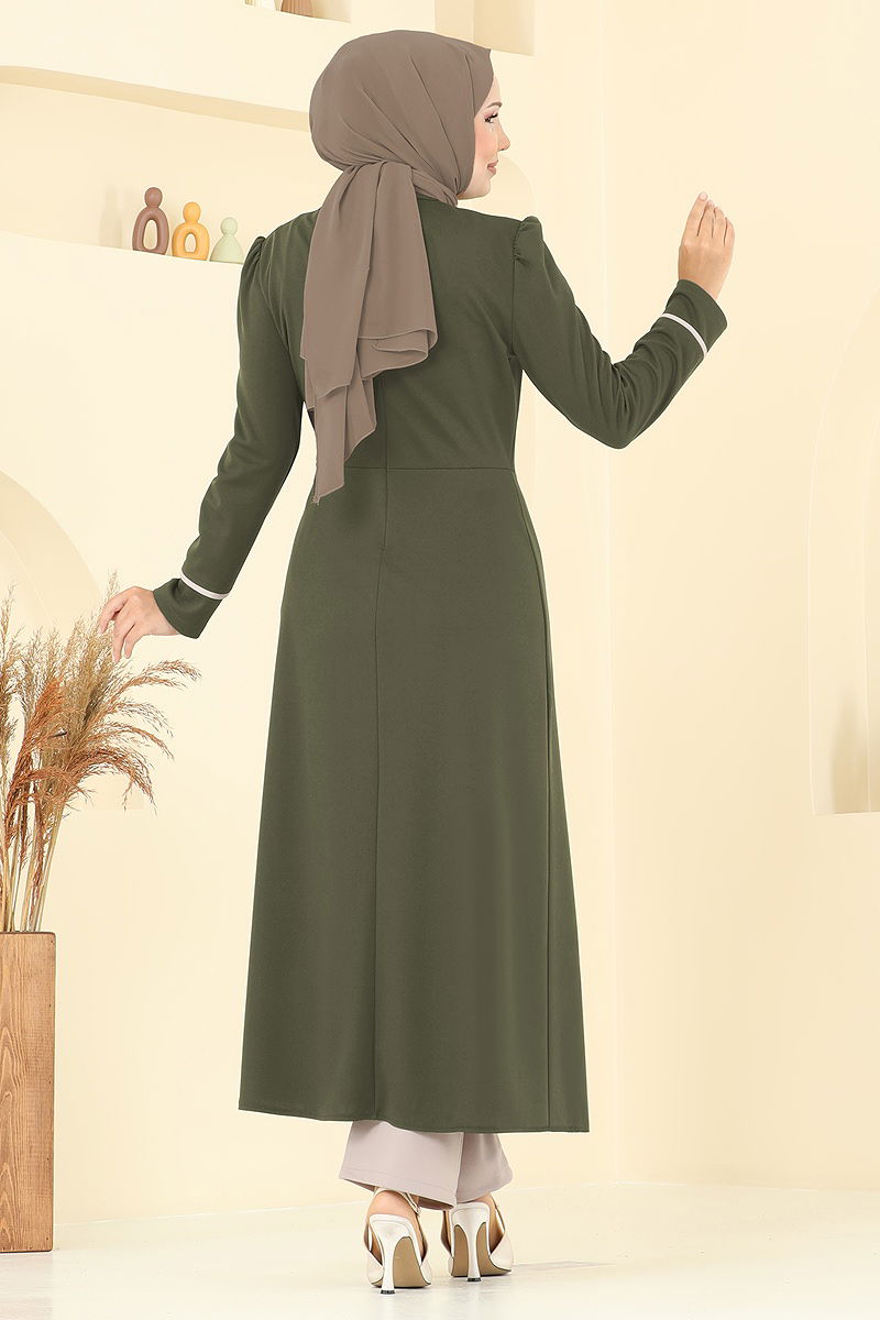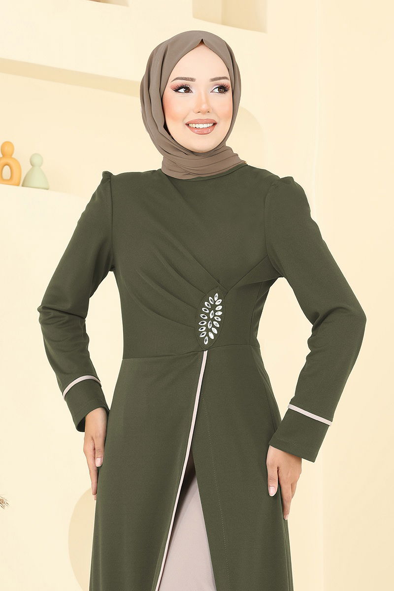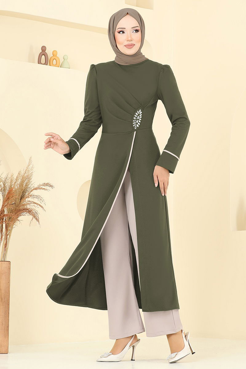 Taş Detaylı Yırtmaçlı Takım Haki&Vizyon
