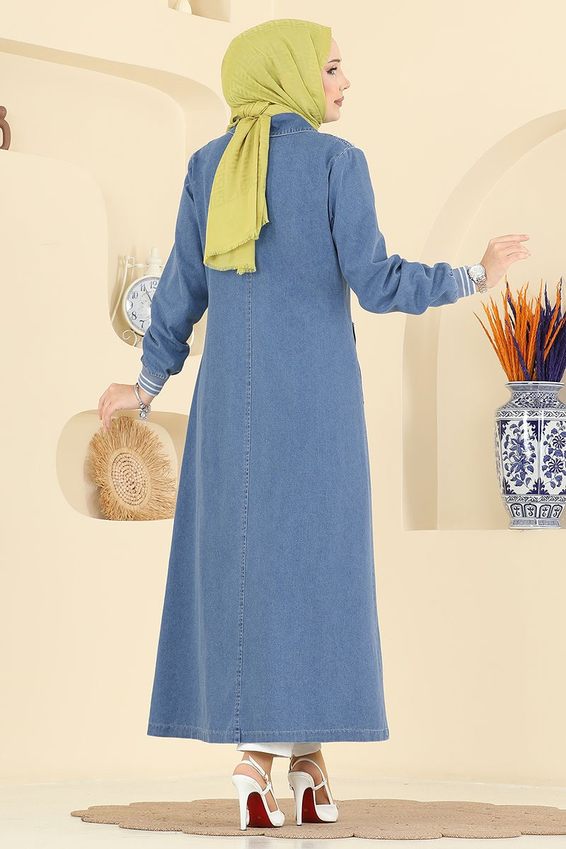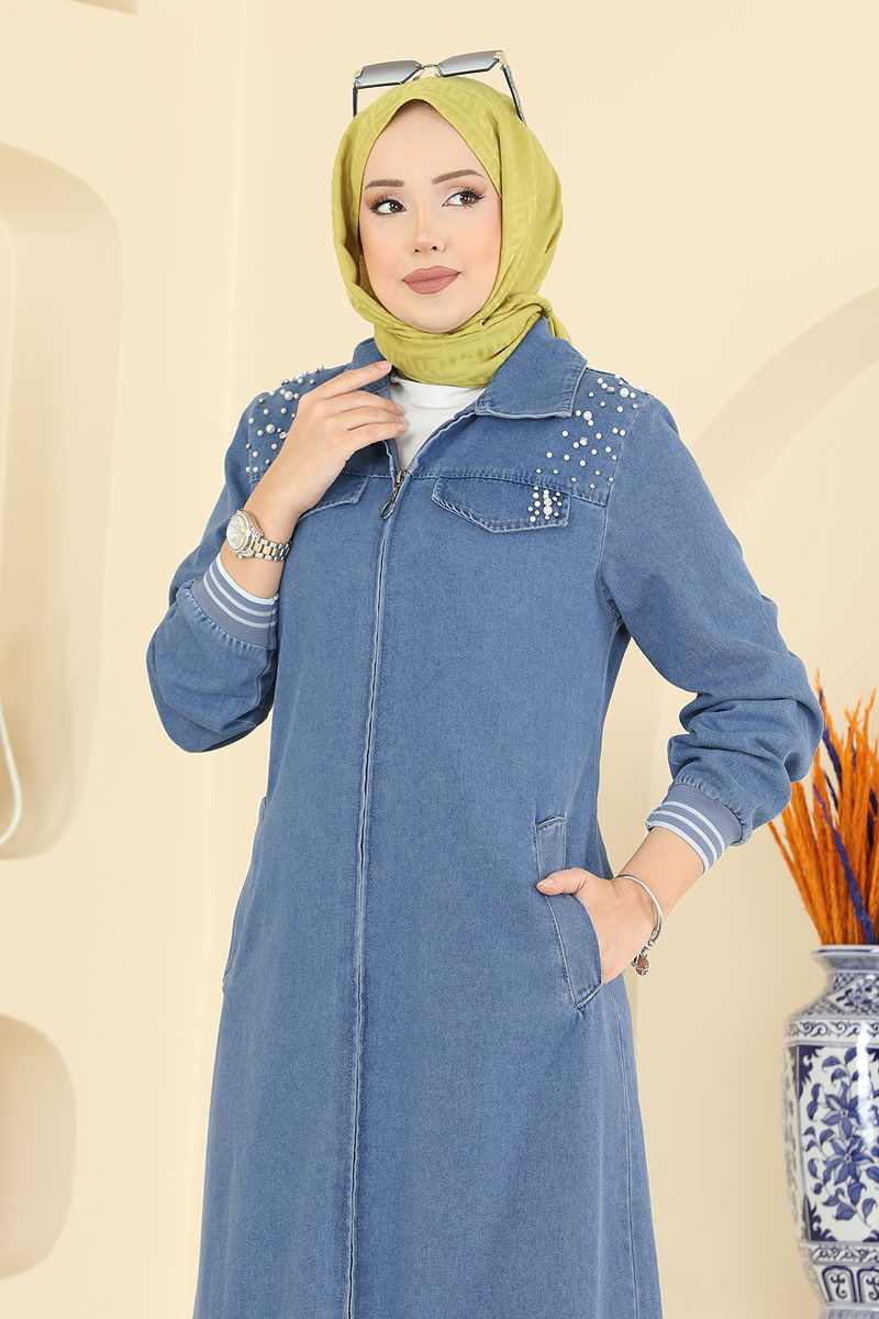 Taş İşlemeli Kot Ferace 7808ORG1169 Açık Kot