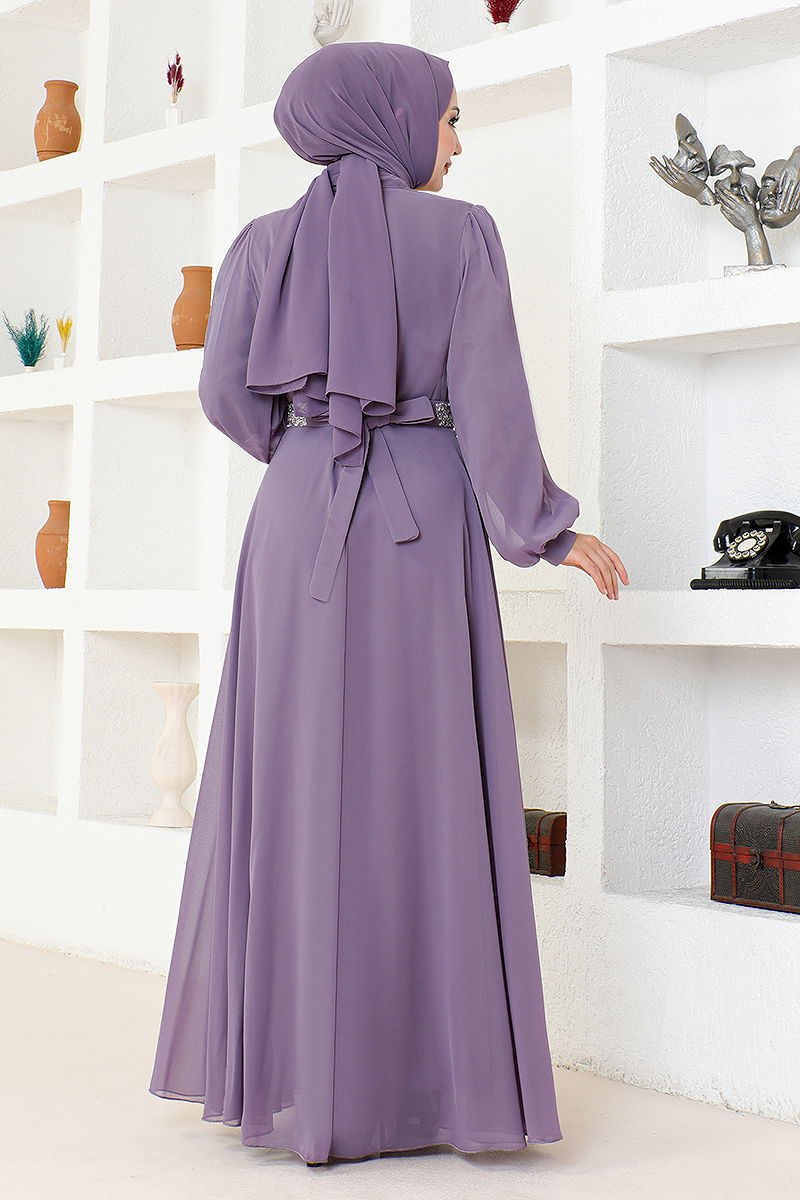 Taş İşlemeli Şifon Abiye LPN6025-M Lila