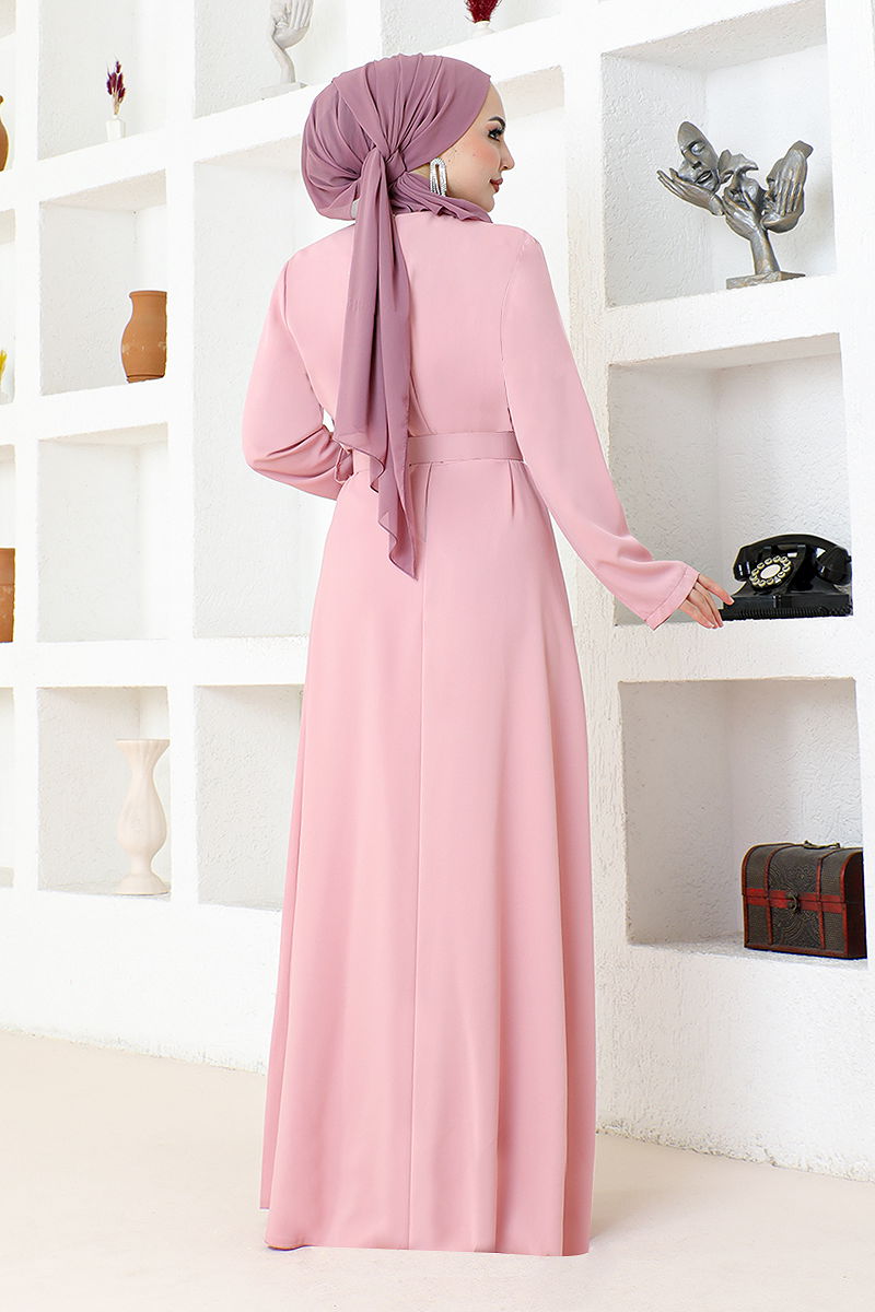 Taş İşlemeli Tesettür Abiye SHD5387-M Pudra
