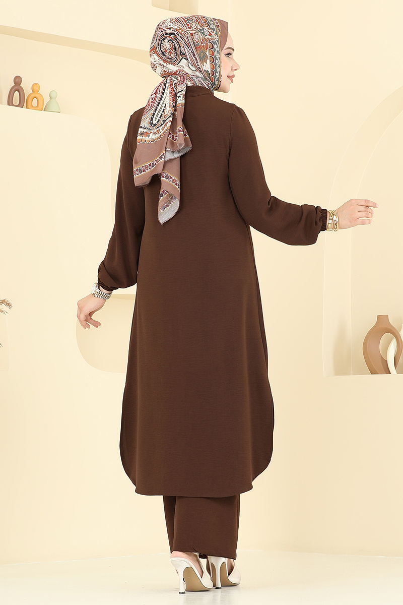 Ürün Özelliği : Yeni sezon tesettür moda ürünüdür. Ürün Yarım Hakim yakadır. Ürün Önden düğmelidir. Tunik yandan yırtmaçlıdır.. Astarsızdır. Taşlar yapıştırmadır. Pantolon beli lastiklidir. Manşet lastiklidir. Konsept fotoğraf çekimlerinden dolayı üründe ton farklılığı olabilir.