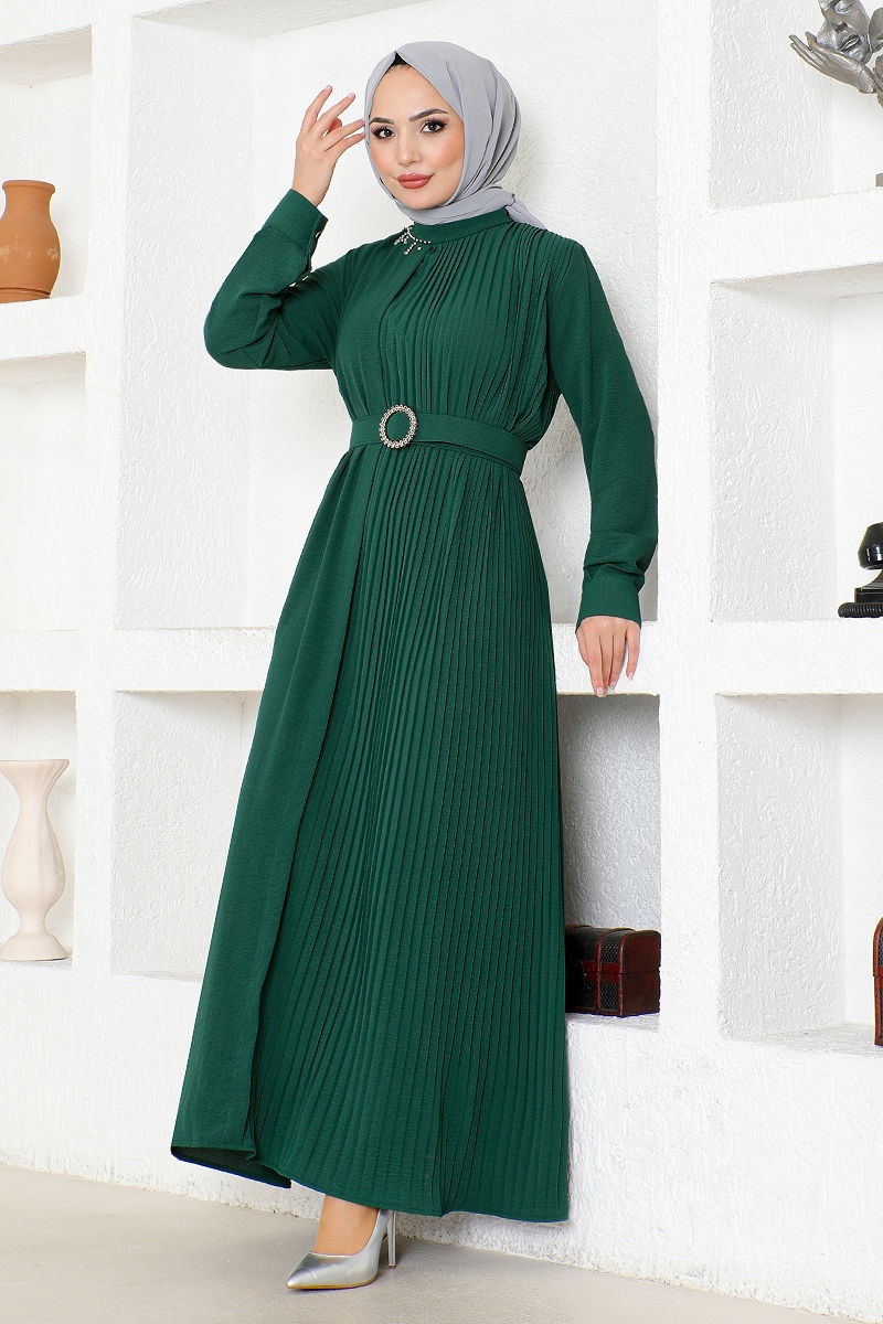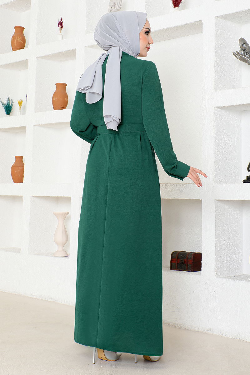 Taş Kemerli Elbise Zümrüt
