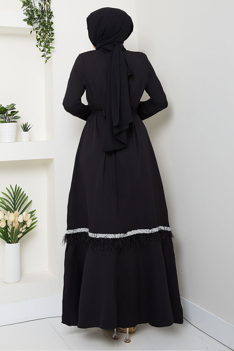 Çarpıcı ve sofistike bir görünüme kavuşmanız için tasarlanmış Taş Şerit Detaylı Abiye, özel günlerinizde göz alıcı bir şıklık sunar. Tesettür giyim tercih eden kadınlar için özel olarak tasarlanmış bu model, zarif taş detayları ile dikkat çeker. Uzun kollu tasarımı ve kapalı kesimi ile hem şık hem de konforlu bir kullanım sağlar. Kaliteli kumaşı, size uzun süreli kullanım garantisi verirken, abiyenin şık duruşu her türlü özel etkinlikte sizi ön planda tutacak.