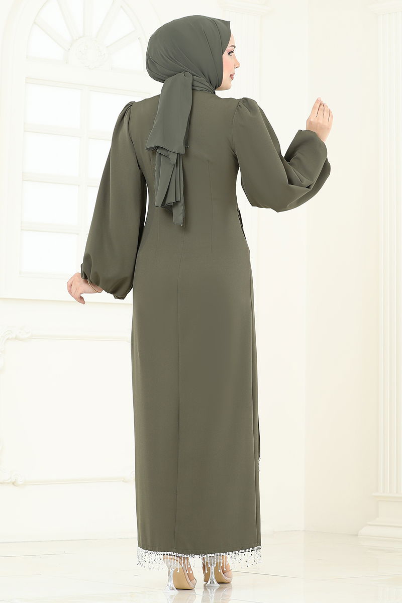 Taşlı Abiye Elbise Haki