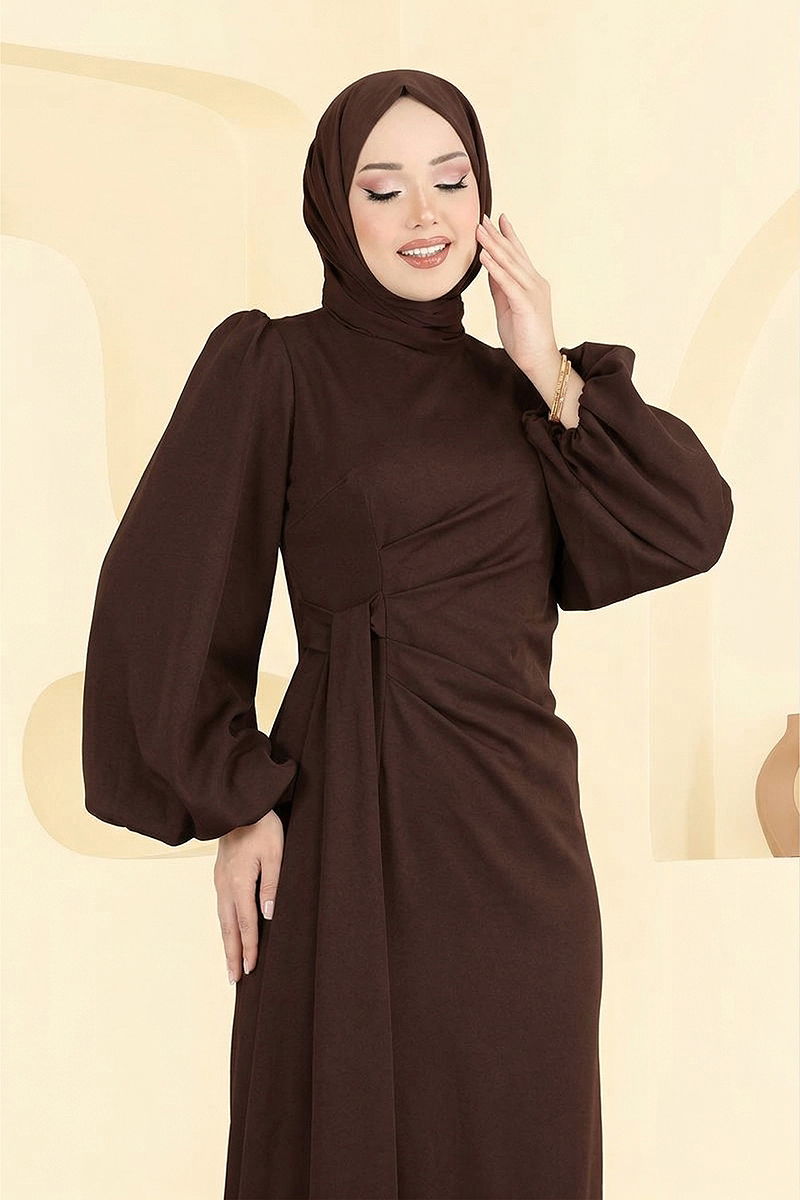 Taşlı Abiye Elbise 6225BSK463 Kahve