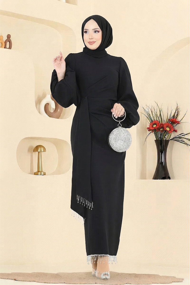 Taşlı Abiye Elbise Siyah