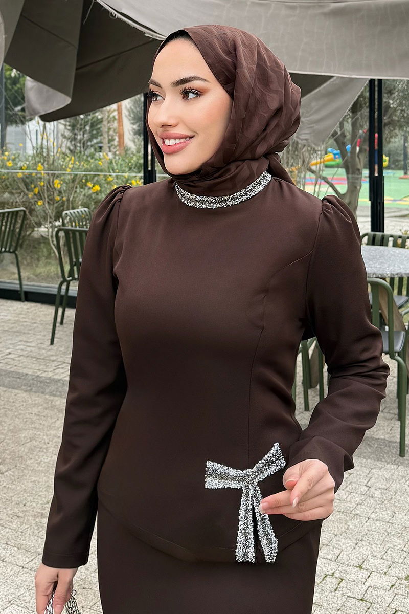 Taşlı Fiyonk Detaylı Takım 4699ALGK1170 Kahve