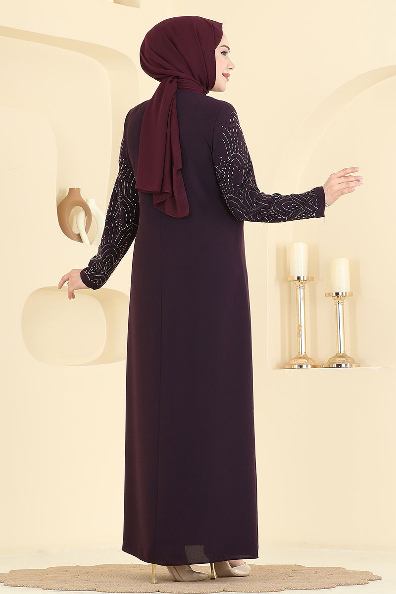 Taşlı Petek Kumaş Elbise 0500ORG1169 Mor