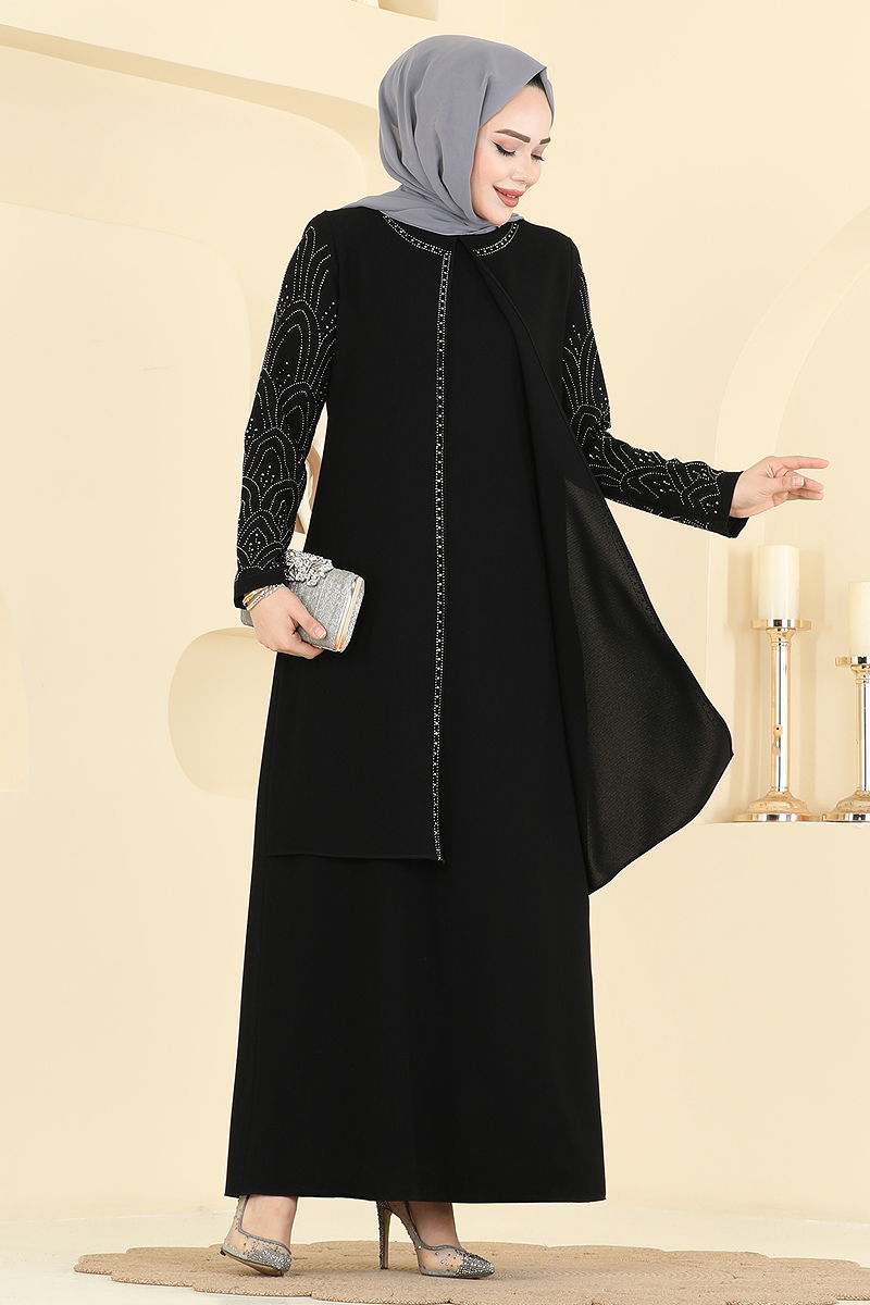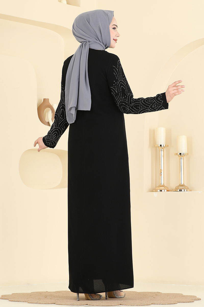 Taşlı Petek Kumaş Elbise 0500ORG1169 Siyah