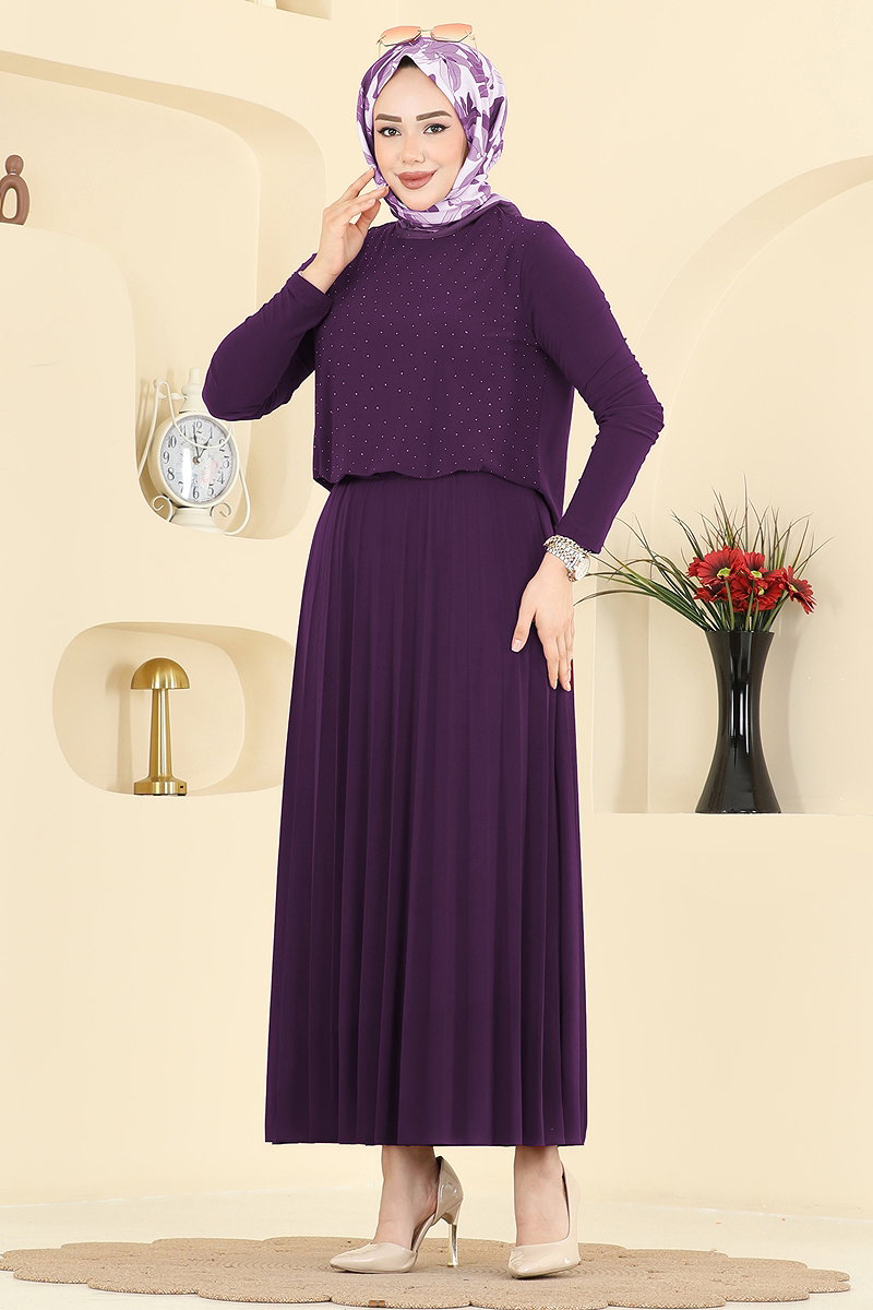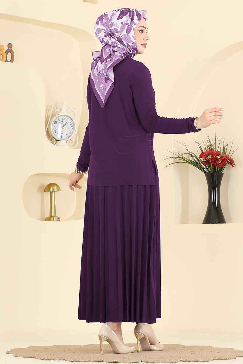 Taşlı Pilise Etekli Takım 5581ZNN863 Mürdüm