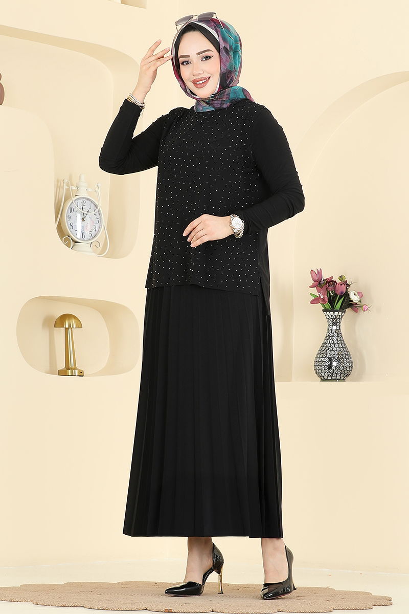 Taşlı Pilise Etekli Takım 5581ZNN863 Siyah