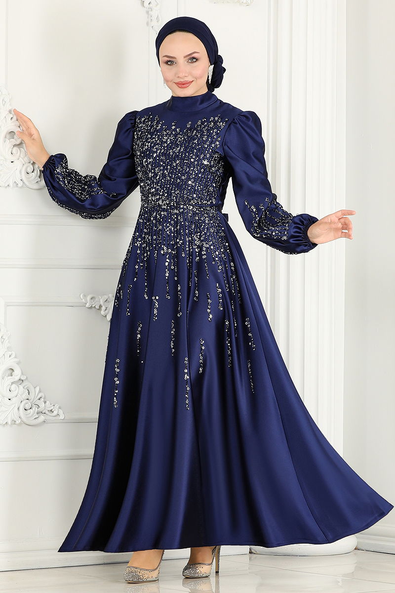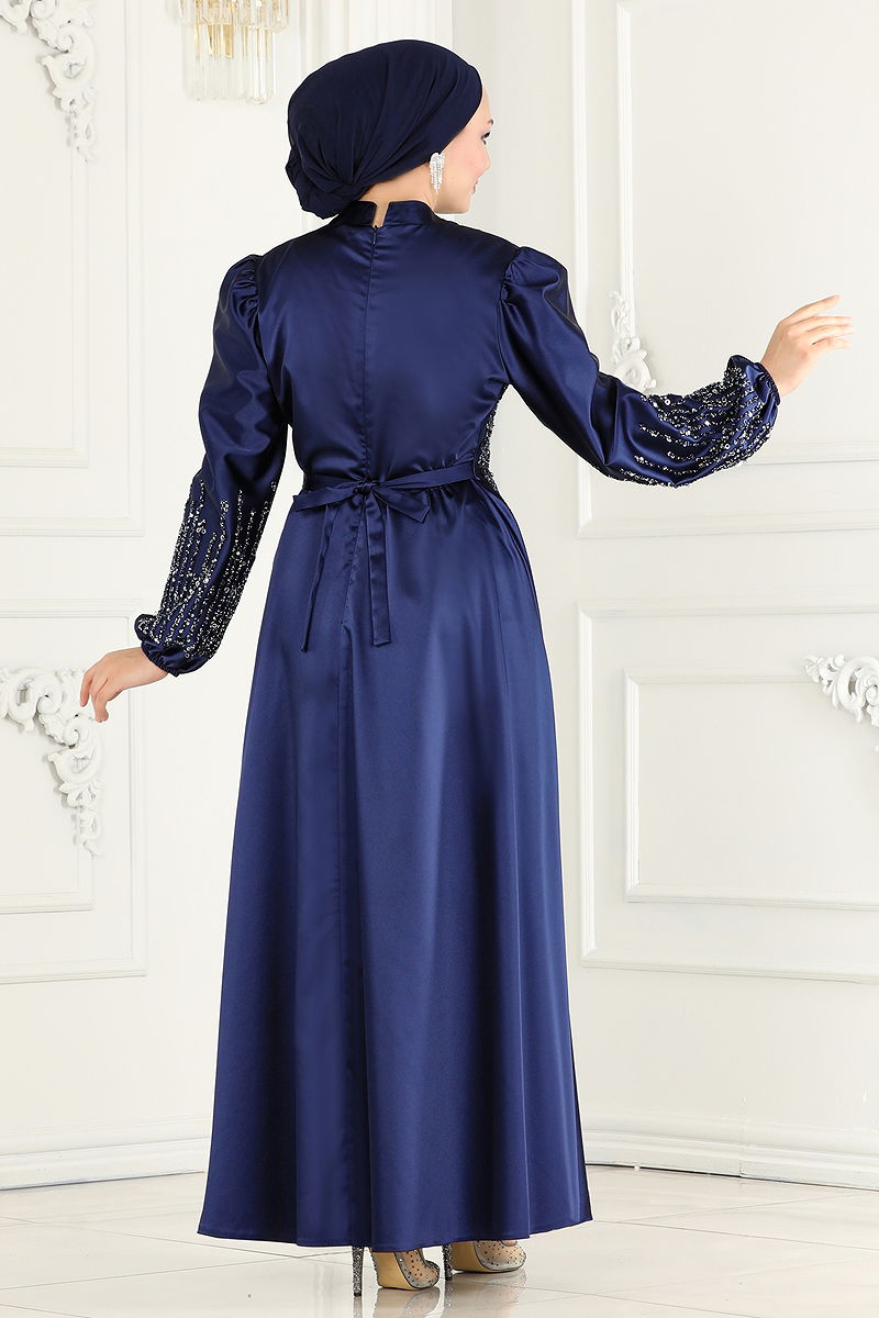 Kumaş Özelliği : Saten kumaştan imal edilmiştir.Dört mevsim kullanılabilir.Ürün Özelliği :Yeni sezon tesettür moda ürünüdür. (Astarsızdır.)Hakim yakadır.Sırttan kullanılabilir fermuarı bulunmaktadır.Kemer dikilidir.Manşet lastiklidir.Taşlar yapıştırmadır.Pullar yapıştırmadır.Ürün renginde konsept çekimlerinden dolayı ton farklılığı olabilir.