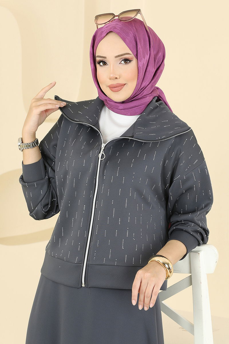 Ürün Özelliği : Yeni sezon tesettür moda ürünüdür. Ürün Dik yakadır. Astarsızdır. Ürün Önden fermuarlıdır. Taşlar yapıştırmadır. Etek beli lastiklidir.Konsept fotoğraf çekimlerinden dolayı üründe ton farklılığı olabilir.
