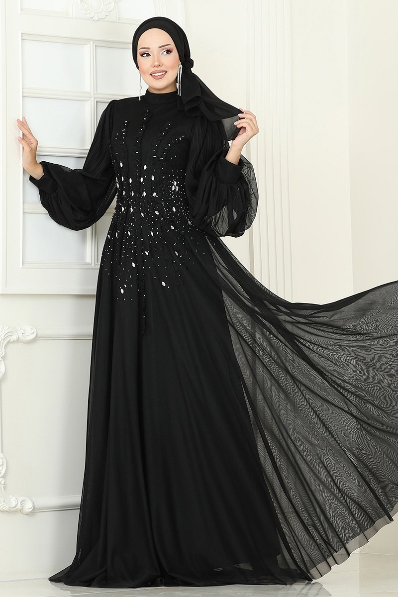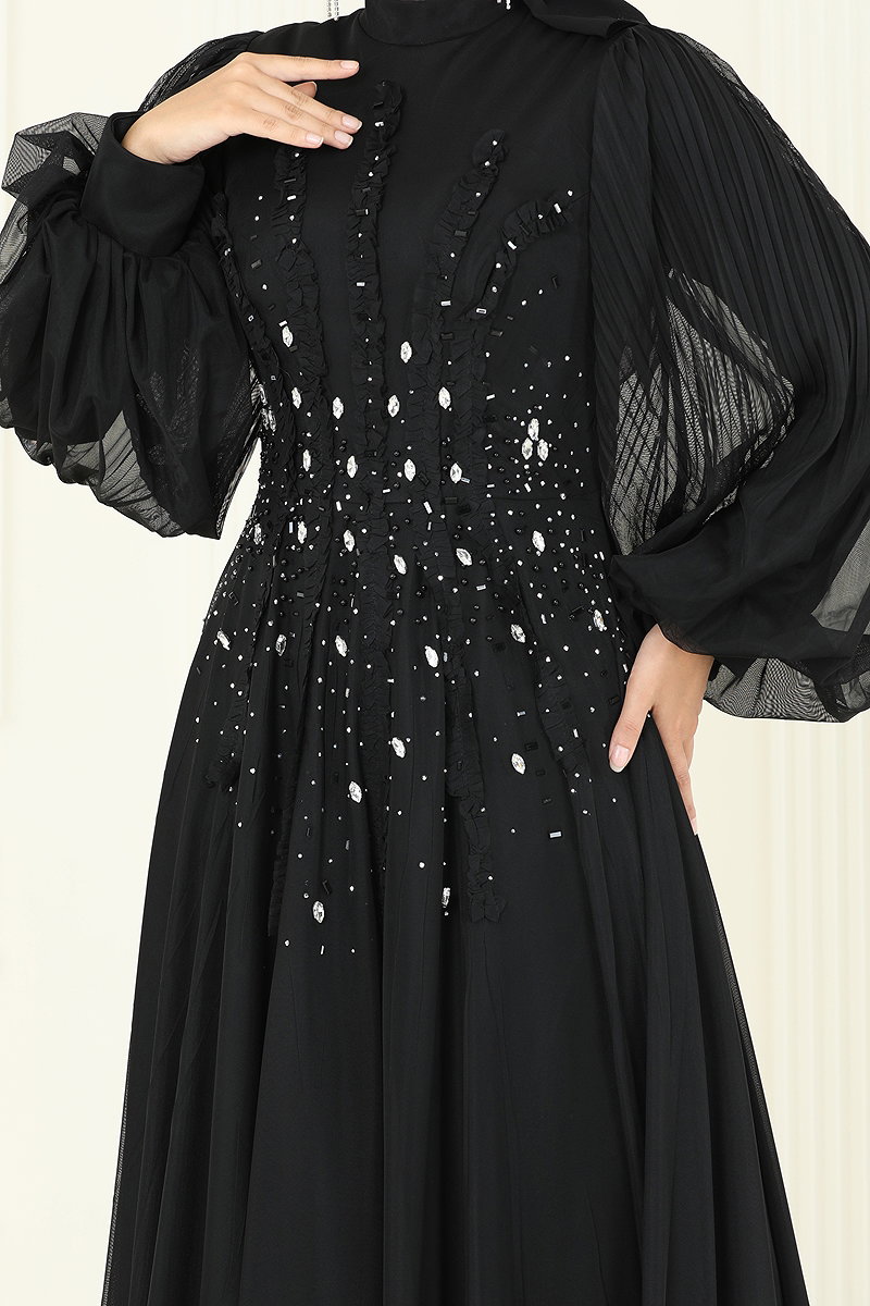 Taşlı Şifon Tesettür Abiye 5315D170 Siyah