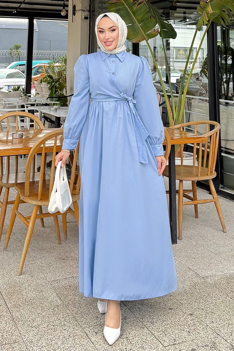 Terikoton Gömlek Yaka Elbise 4709ALGK1170 Bebe Mavisi