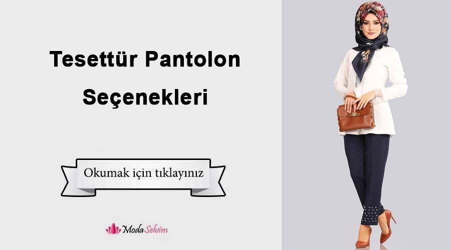 Günümüzde tesettür giyimde en fazla tercih edilen kıyafet seçeneklerinden birisi de pantolonlardır. Her tarza uygun pantolon modelleri bulunmaktadır. Hem spor hem de özel organizasyonlar için uygun çeşitli pantolon seçenekleri oldukça fazladır. Pantolonlar tesettürlü kadınların en fazla rahat ettikleri bir kıyafet türüdür. Bu sebeple tesettürlü kadınlar tarafından en fazla tercih edilenler arasında yer almaktadır.