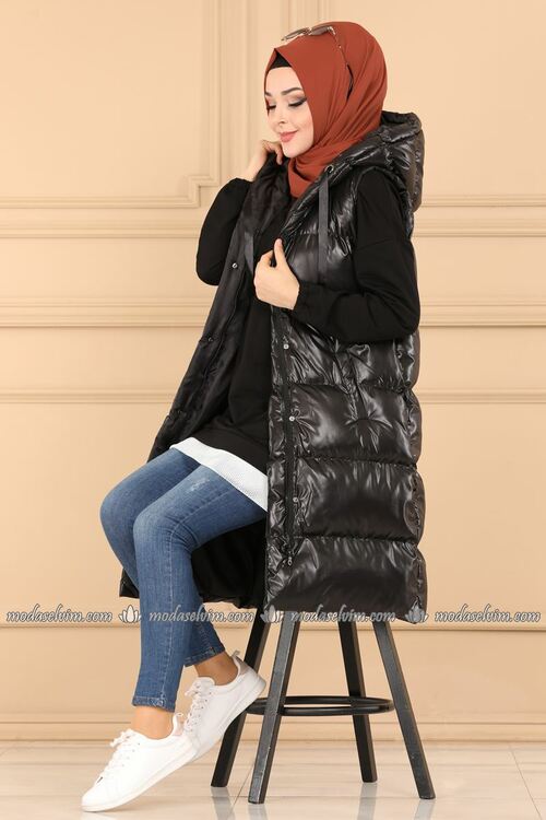 Son beş yıl içinde şişme mont ve yelekler moda olmuş durumda. Birçok insanın büyük bir keyifle giydiği tasarımlardan biri haline geldi. Bu modelde siyah renk kullanılmış. Kürk kapşonlu detayı ise güzel bir imza olmuş.