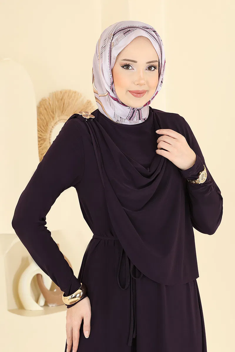 Toka Detaylı Sandy Elbise 2455ANT466 Mürdüm