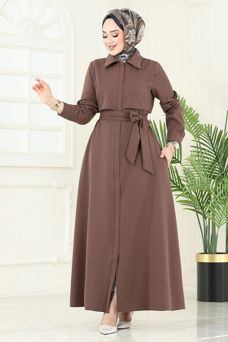 Product Feature : It is a new season hijab fashion product. The product has a Shirt collar. Unlined. The product has a zipper at the From the front part. Belt included, optional not available. Accessories are not included. Pocket available. Cuff buttons are active. There may be a tonal difference in the product due to concept photo shoots.