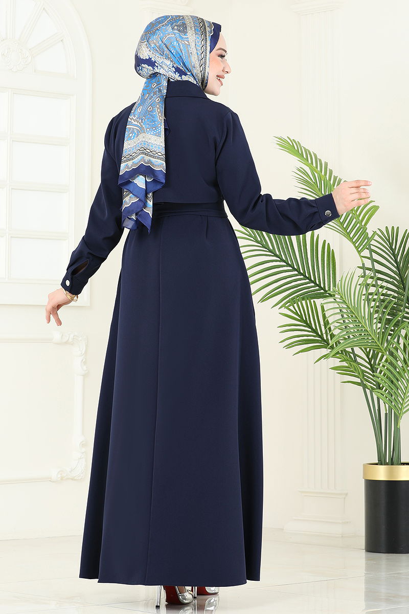 The Hidden Zipper Abaya is a stylish Islamic clothing item that can be worn comfortably across all seasons. Made from delicate woven Dabıl fabric, this model features a shirt collar design and is unlined. It stands out with its convenient front zipper. The belt at the waist is sewn at the ends to prevent waviness and can be removed if desired. Additionally, the cuffs come with active buttons for ease of use, and the broad pockets offer extra comfort. The product can be cleaned with a gentle wash at 30 degrees.