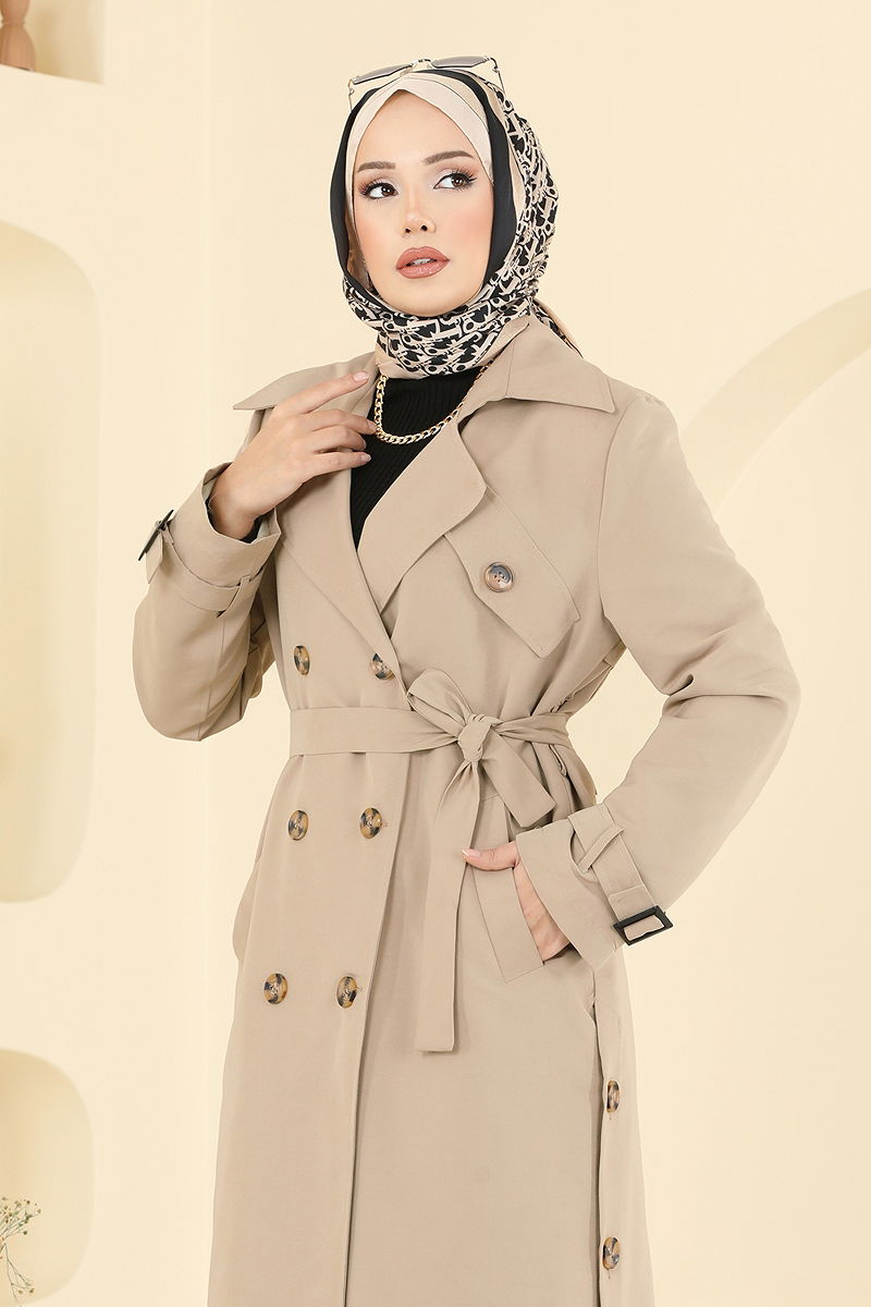 Product Feature : It is a new season hijab fashion product. The product has a Double-breasted collar. The product has From the front buttons. Half lined.. Belt included, optional not available. Pocket available. There may be a tonal difference in the product due to concept photo shoots.
