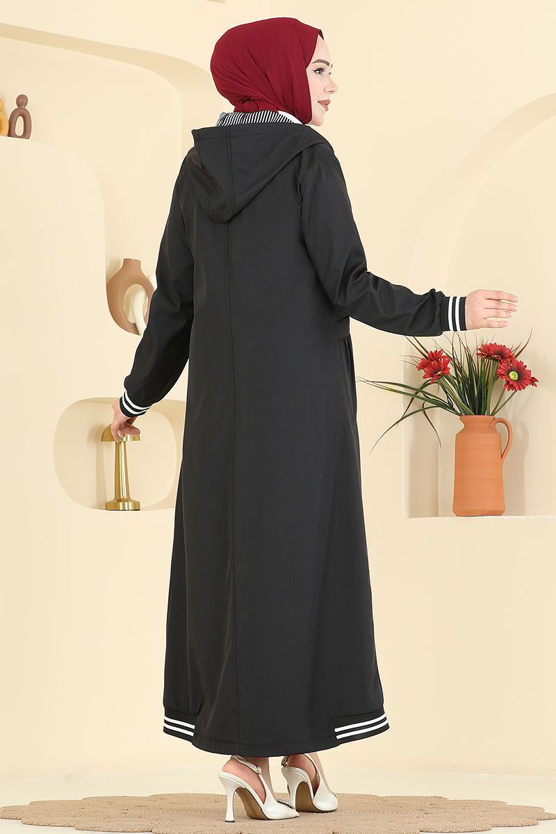 The Ribbed Detailing Bondit Trench Coat is a perfect complement to your modest fashion. Designed to keep you warm during the Fall and Winter seasons, it can be washed at 30 degrees without wringing due to its delicate fabric. It offers practical use with its hooded and zippered design. The functional elements like active collar ties and sewn arm badges add elegance, while the hood and pockets increase functionality. Its lining-free design promises a light and comfortable experience.