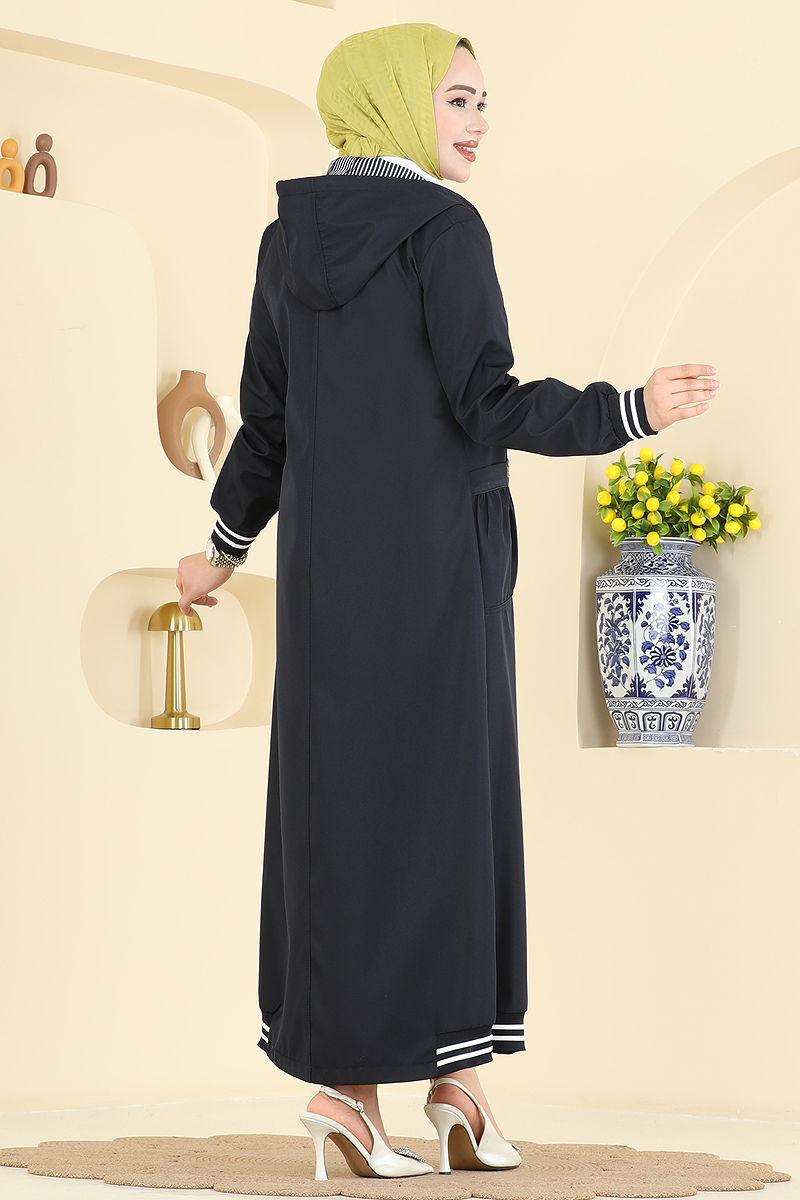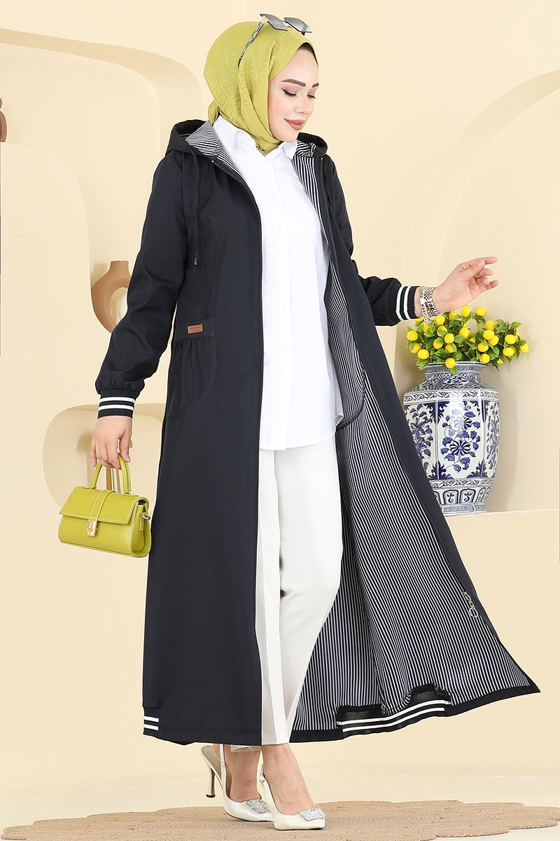 The Ribbed Detailing Bondit Trench Coat is a perfect complement to your modest fashion. Designed to keep you warm during the Fall and Winter seasons, it can be washed at 30 degrees without wringing due to its delicate fabric. It offers practical use with its hooded and zippered design. The functional elements like active collar ties and sewn arm badges add elegance, while the hood and pockets increase functionality. Its lining-free design promises a light and comfortable experience.