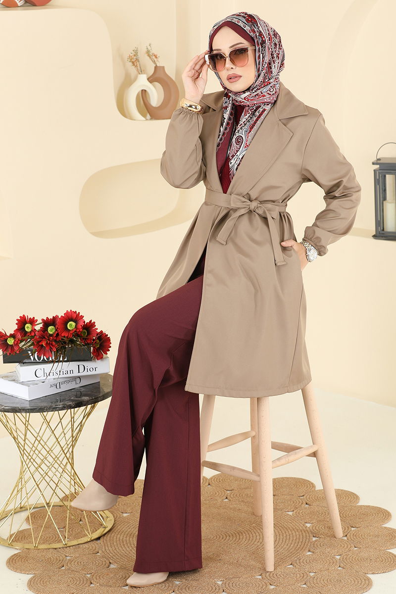 المنتج لديه ياقة مفتوحة. غير مبطنة. .لا يوجد جسر حزام في المنتج الحزام متضمن، ،يمكن استخدامها حسب الرغبة يحتوي المنتج على جيب. السوار مطاطي. قد يكون هناك اختلاف في الدرجة اللونية في المنتج بسبب التقاط الصور الفوتوغرافية.