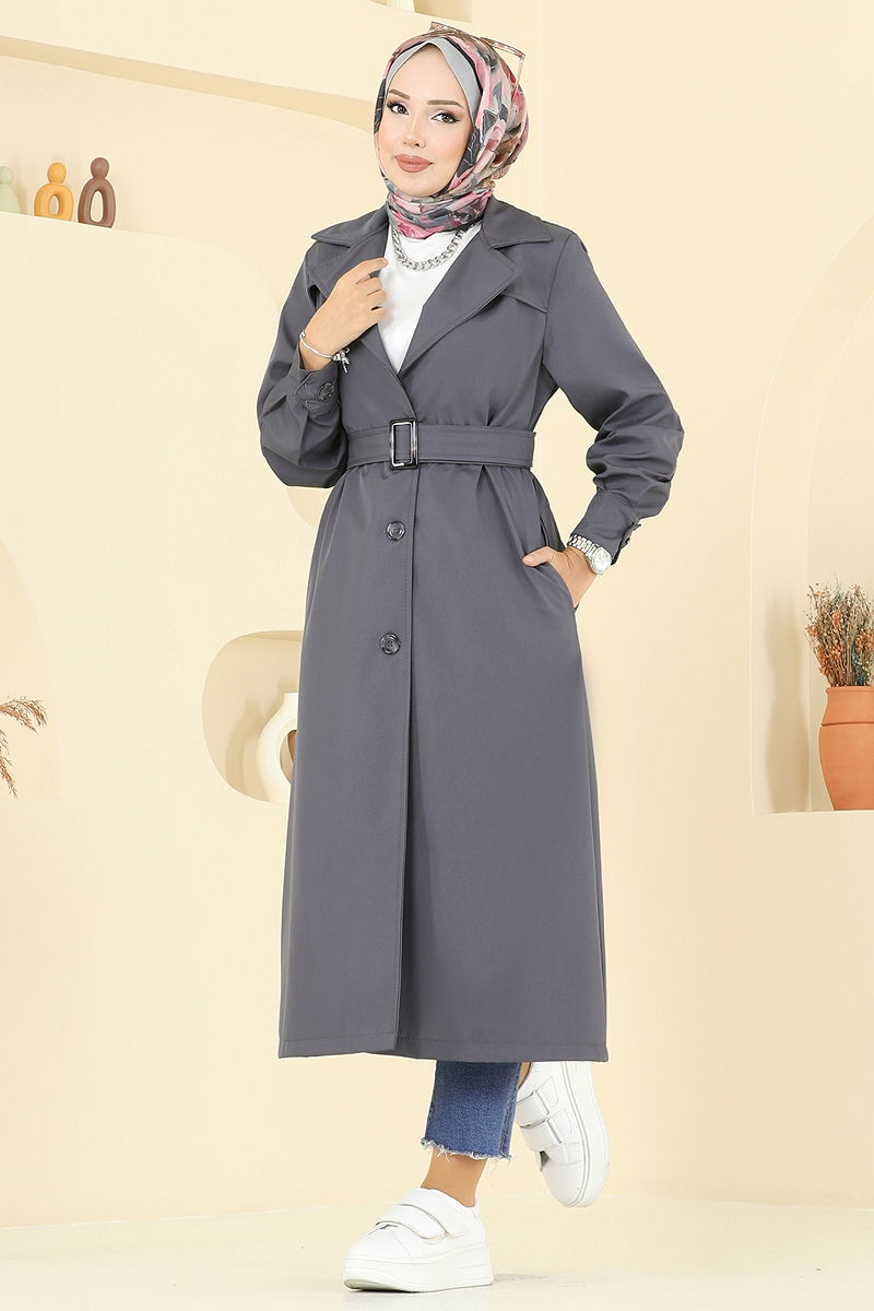 Product Feature : It is a new season hijab fashion product. The product has a Double-breasted collar. The product has From the front buttons. Unlined. Belt included, optional not available. Pocket available. Cuff buttons are active. There may be a tonal difference in the product due to concept photo shoots.