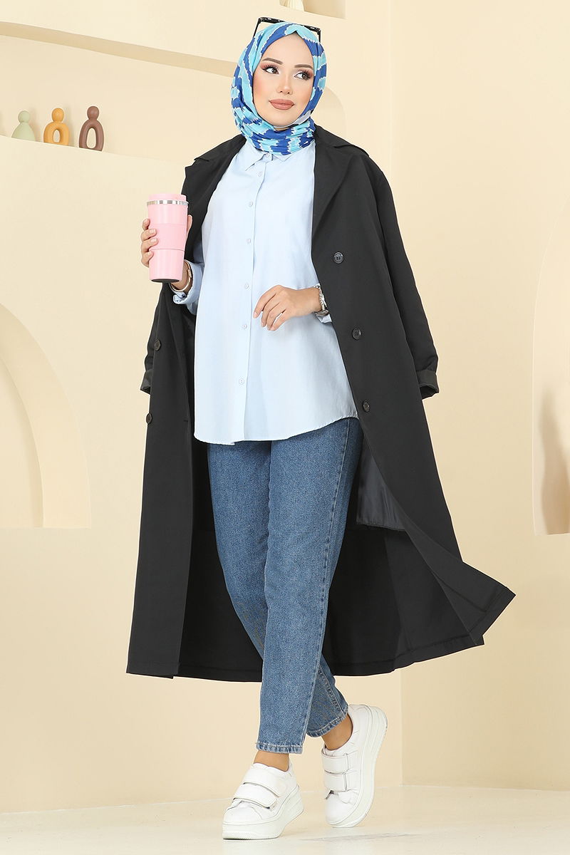 Product Feature : It is a new season hijab fashion product. The product has a Double-breasted collar. The product has From the front buttons. The slash is not active.. It is lined. Belt included, optional not available. Pocket available. There may be a tonal difference in the product due to concept photo shoots.