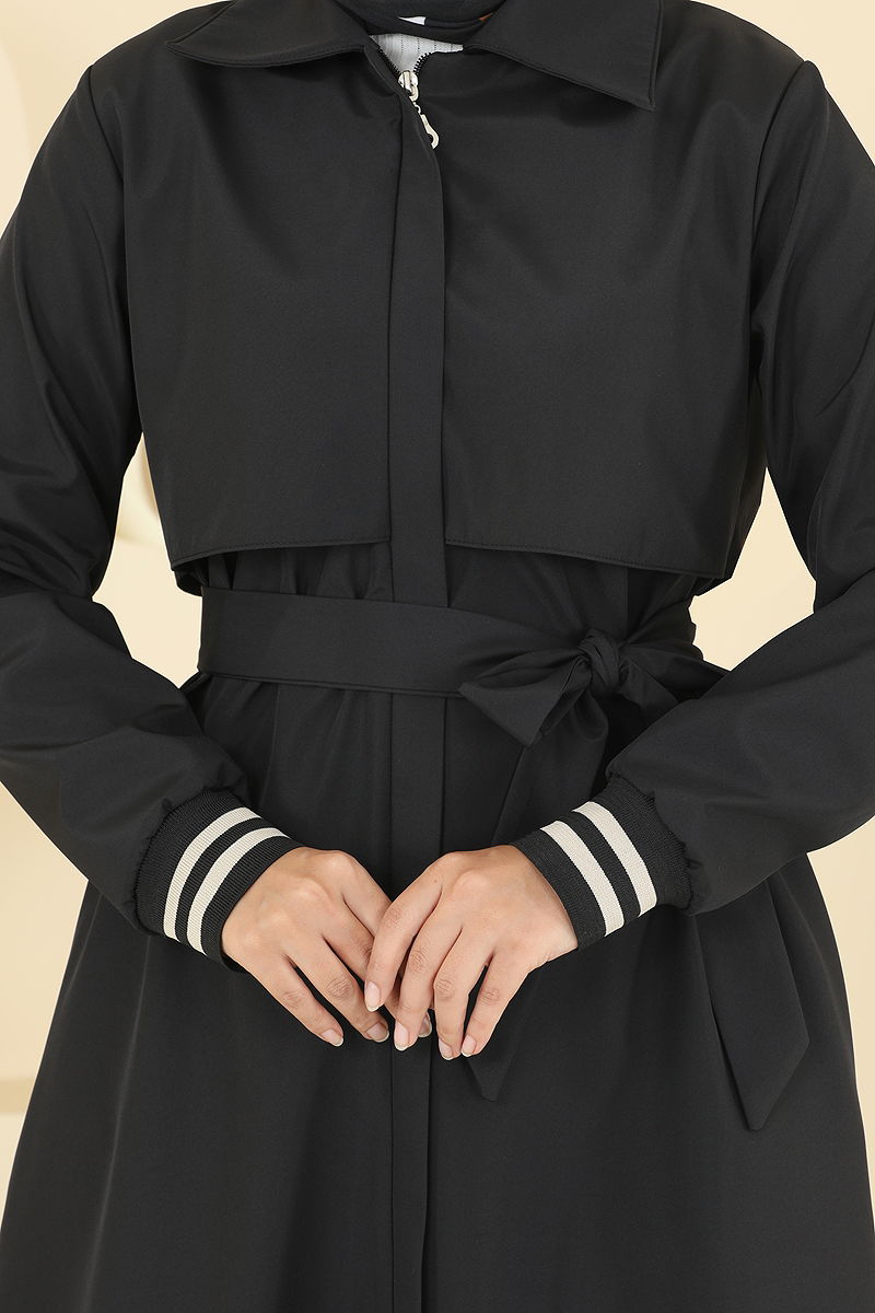 The Cuffed Ribbed Bondit Trench Coat is designed for modest wear, perfect for Autumn and Winter seasons. Made from soft bondit fabric, it offers comfortable wear. It features a shirt collar and a liner-free design for a modern look. Its zippered front and adjustable belt provide practical use. The coat includes a pocket for added convenience, and the belt ends are fixed to maintain a crisp shape. The coat can be washed at 30 degrees on a delicate cycle. This trench coat is ideal for those who seek both style and comfort.
