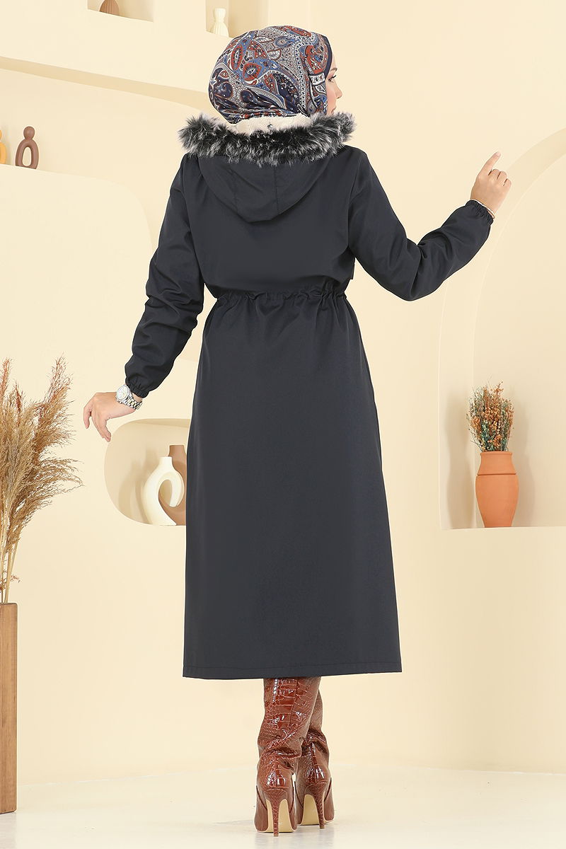 Product Feature : It is a new season hijab fashion product. It has a laced waist. The hood is detachable and can be used optionally. The product has a Hooded collar. The lining is made of fur.. The product has a zipper at the From the front part. Hood fur is sewn into the product. The product has a pocket. The cuff is rubberized. There may be a tonal difference in the product due to concept photo shoots.
