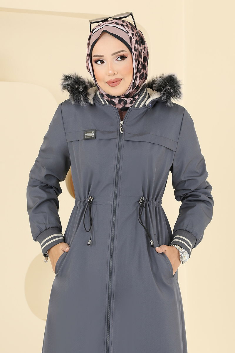 Product Feature : It is a new season hijab fashion product. The hood is detachable and can be used optionally. The product has a Hooded collar. The lining is made of fur.. The product has a zipper at the From the front part. The fur is sewn into the product. The product has a pocket. There may be a tonal difference in the product due to concept photo shoots.