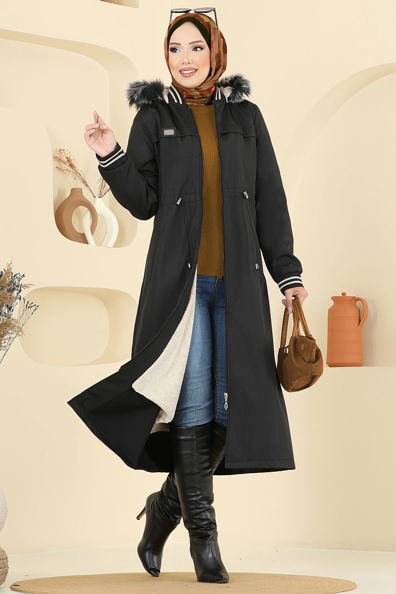 القبعة قابلة للإزالة ويمكن استخدامها حسب الرغبة. المنتج لديه ياقة مع قبعة. البطانة مبطنة بالفرو.. المنتج به سحاب في جزء من الأمام. يتم خياطة الفراء على المنتج. يحتوي المنتج على جيب. قد يكون هناك اختلاف في الدرجة اللونية في المنتج بسبب التقاط الصور الفوتوغرافية.