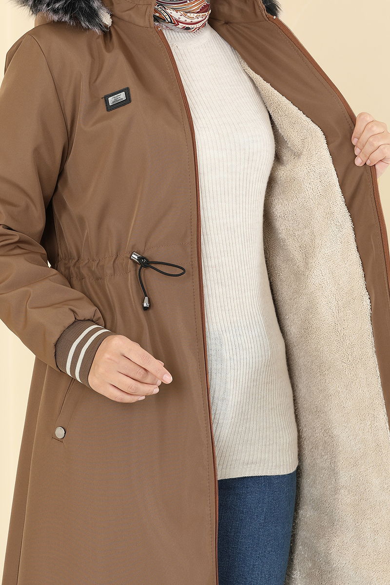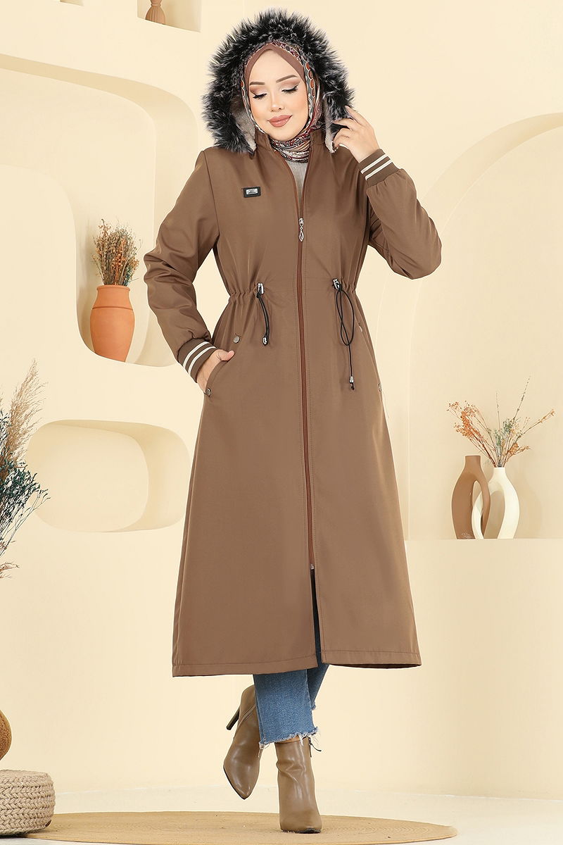 Product Feature : It is a new season hijab fashion product. The hood is detachable and can be used optionally. The lining is made of fur.. The product has a zipper at the From the front part. The coat of arms detail is sewn. Pocket available. There may be a tonal difference in the product due to concept photo shoots.