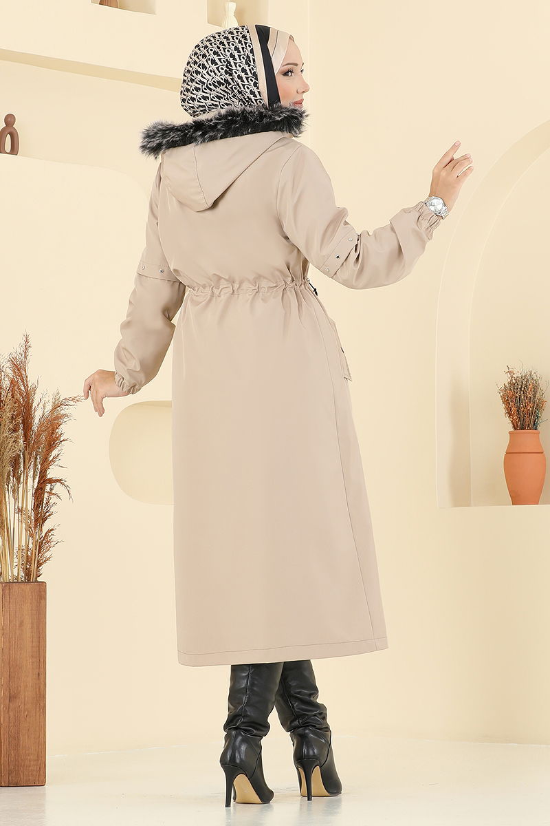 القبعة قابلة للإزالة ويمكن استخدامها حسب الرغبة. المنتج لديه ياقة مع قبعة. المنتج به أزرار من الأمام. البطانة مبطنة بالفرو.. المنتج به سحاب في جزء من الأمام. تم خياطة القبعة مع الفرو يحتوي المنتج على جيب. السوار مطاطي. قد يكون هناك اختلاف في الدرجة اللونية في المنتج بسبب التقاط الصور الفوتوغرافية.