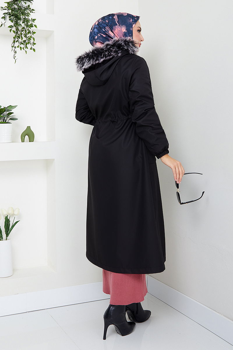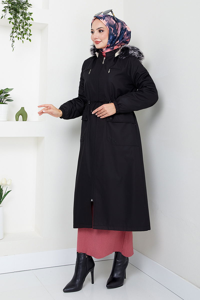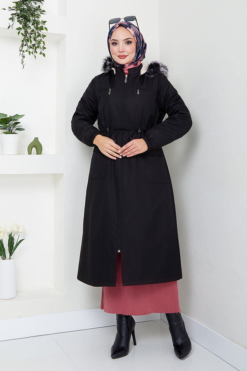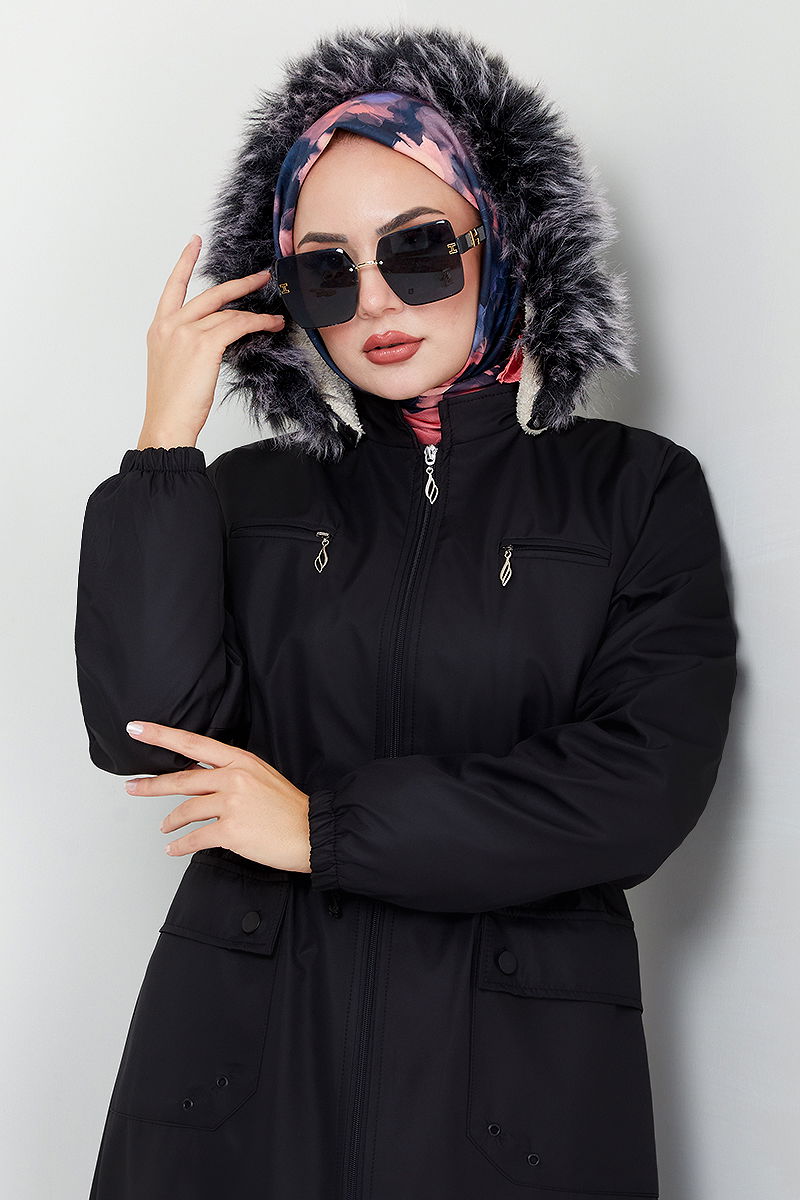 Product Feature : It is a new season hijab fashion product. The product has a Hooded collar. The lining is made of fur.. The product has a zipper at the From the front part. Hood included, optional not available. The chest pocket is active. The cuff is elasticized and fastened. There may be a tonal difference in the product due to concept photo shoots.