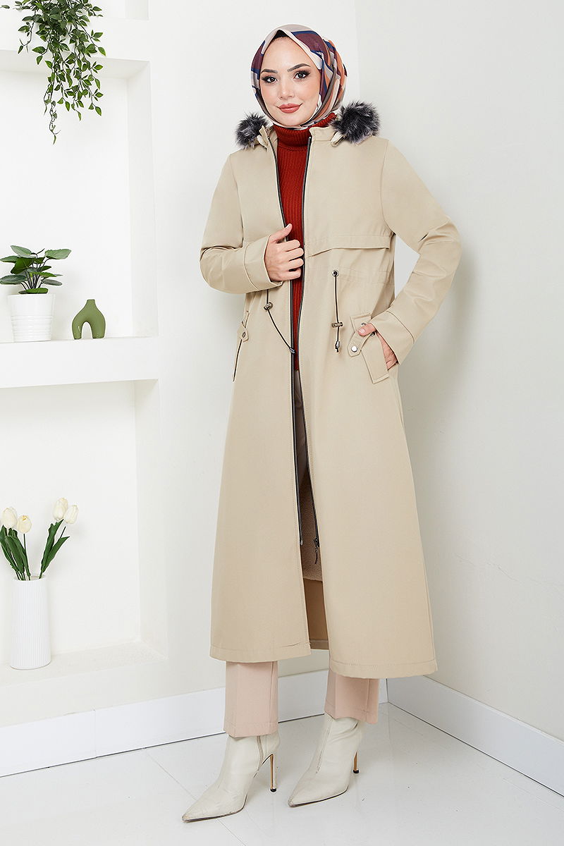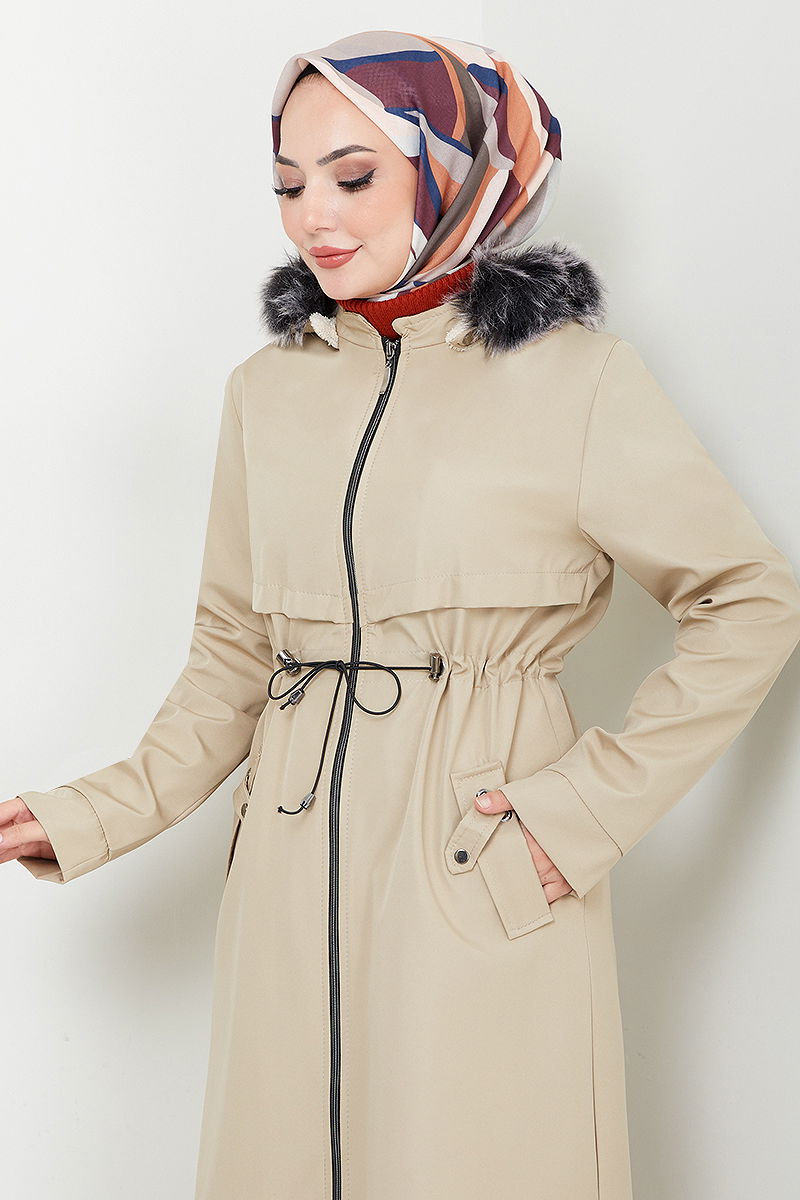 المنتج لديه ياقة مع قبعة. البطانة مبطنة بالفرو.. المنتج به سحاب في جزء من الأمام. يتضمن المنتج القبعة ويمكن استخدامها حسب الرغبة الجيب متاح. يتميز بخصر بأربطة على الخصر. قد يكون هناك اختلاف في الدرجة اللونية في المنتج بسبب التقاط الصور الفوتوغرافية.