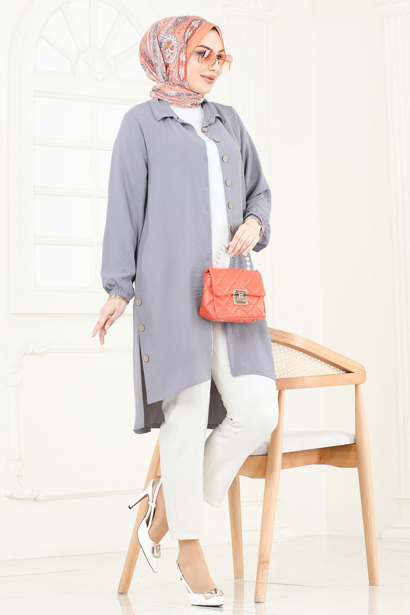 المنتج لديه ياقة القميص. المنتج به أزرار من الأمام. الازرار الموجود بالفتحات اكسسوار. غير مبطنة. السوار مطاطي. قد يكون هناك اختلاف في الدرجة اللونية في المنتج بسبب التقاط الصور الفوتوغرافية.